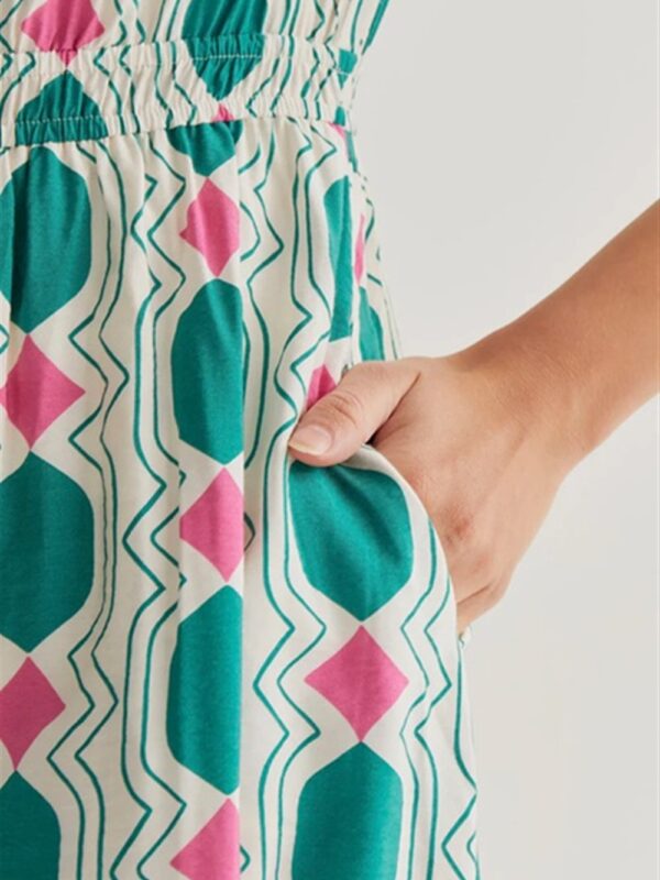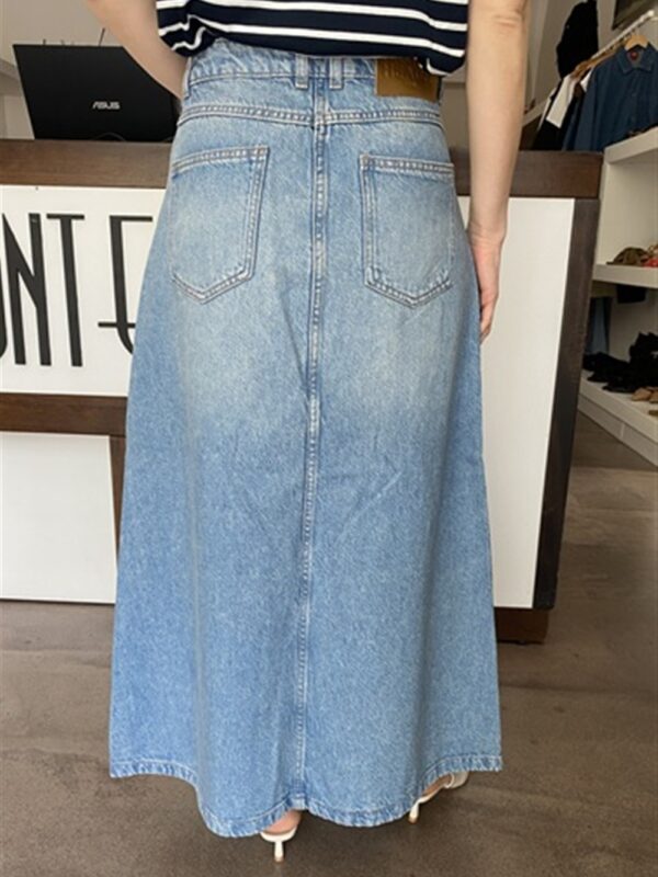 Abito lungo con scollo all’americana, nodo frontale e spacco centrale
