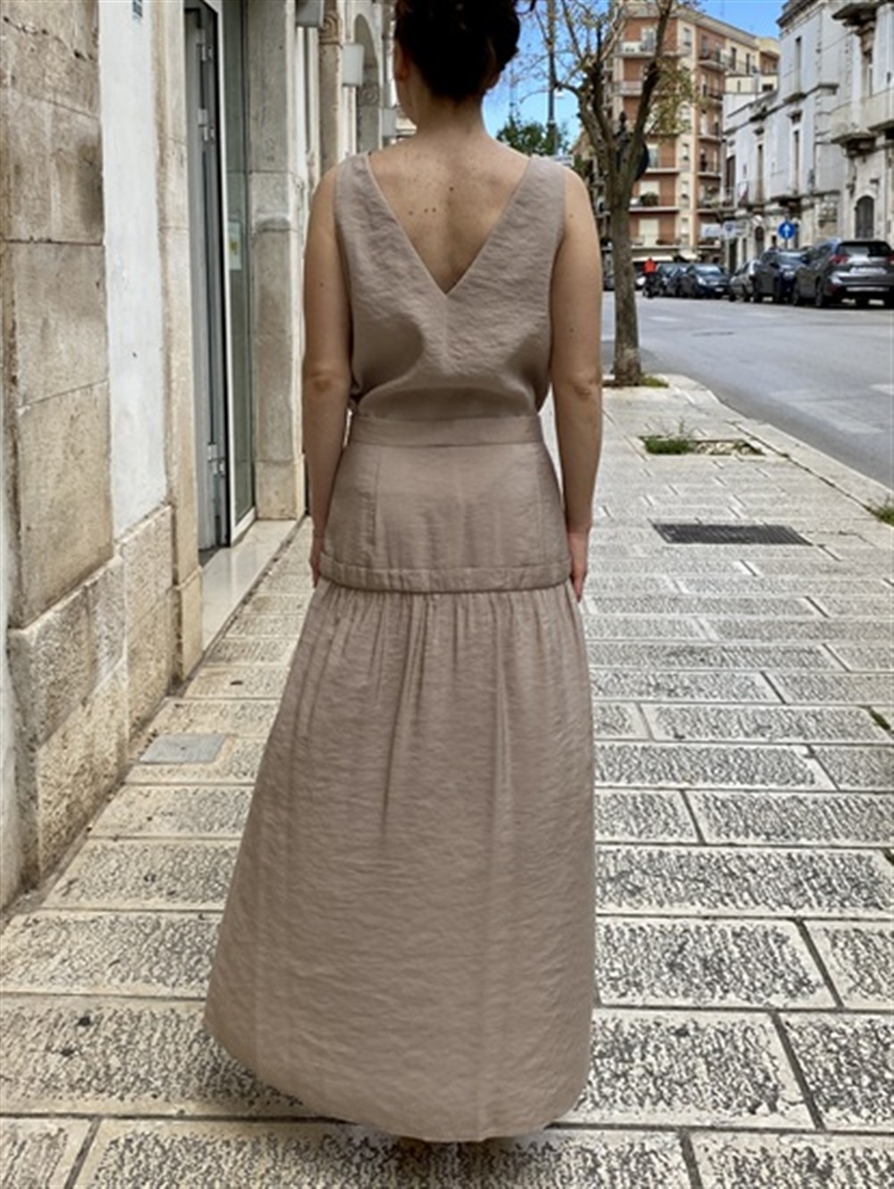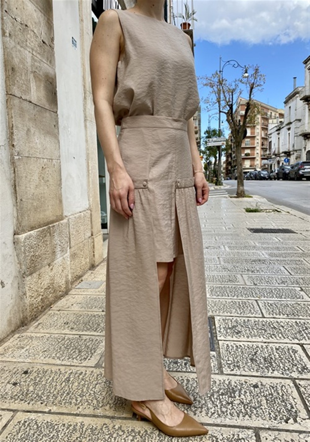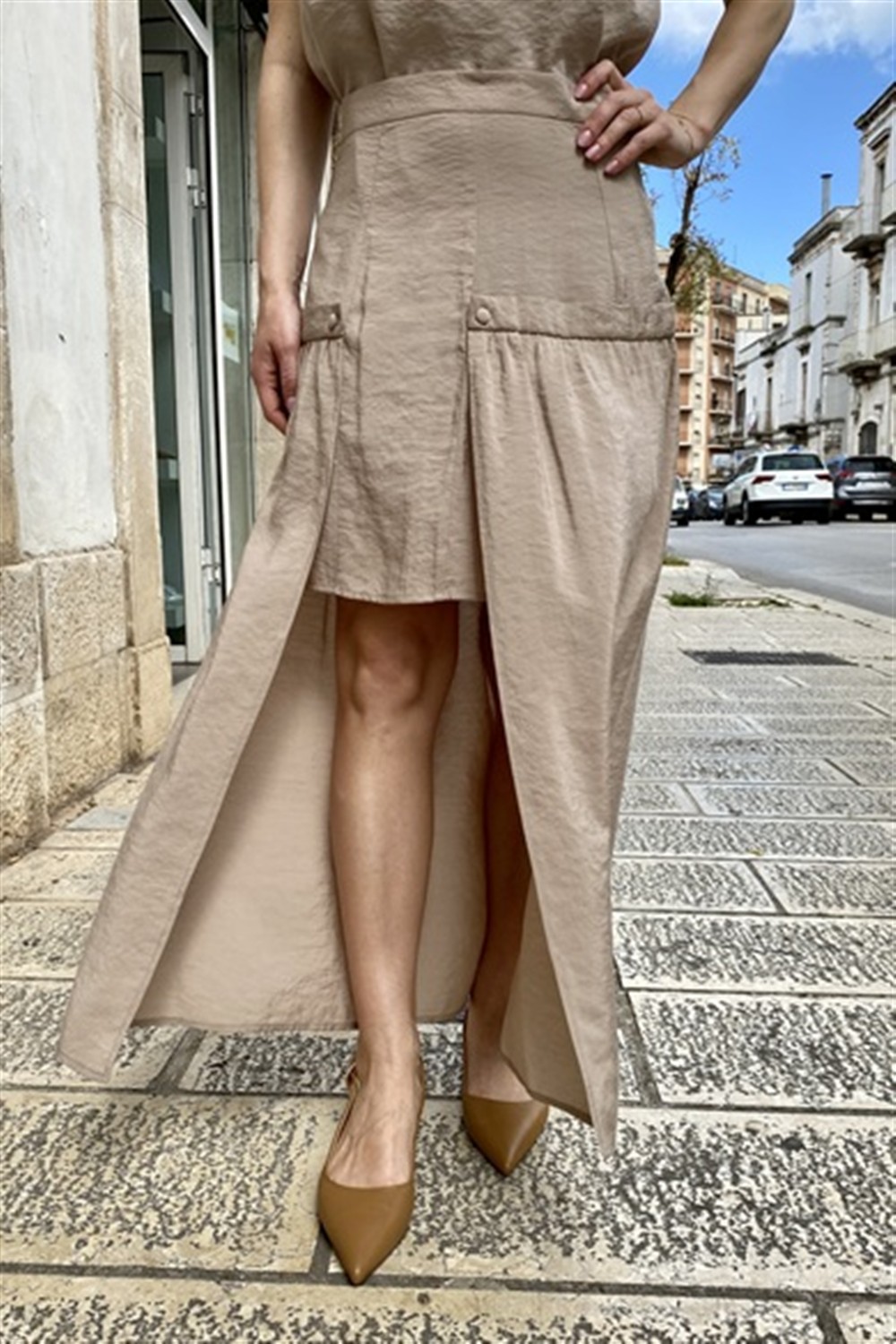 Gonna lunga con balza e spacco rettangolare