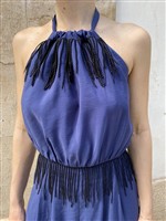 Tuta con scollo all’americana e frange lungo lo scollo ed il cinto