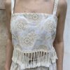 Top in pizzo con scollo a v annodato sul davanti effetto gilet nero