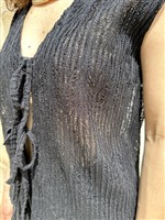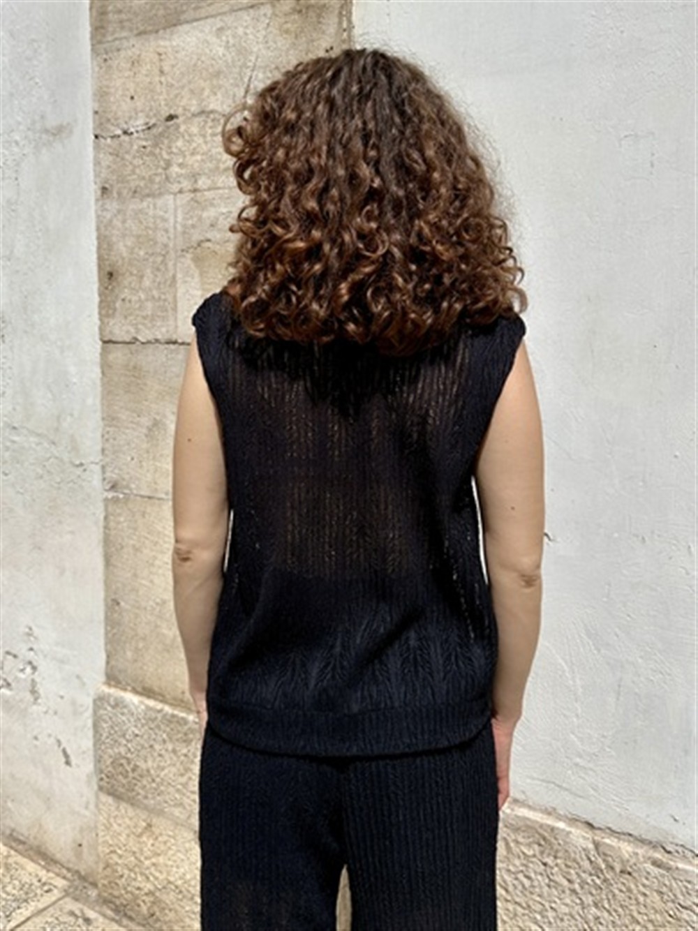 T0877 NERO Top in pizzo con scollo a v annodato sul davanti effetto gilet