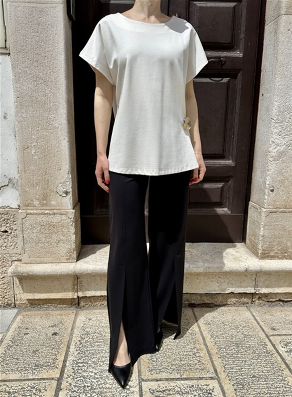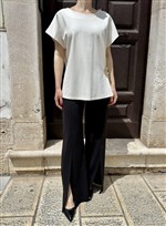 Pantalone gamba dritta in punto milano con spacco sul davanti nero