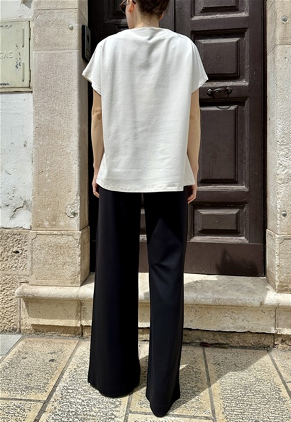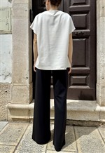 P3502 NERO Pantalone gamba dritta in punto milano con spacco sul davanti