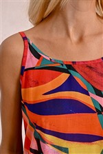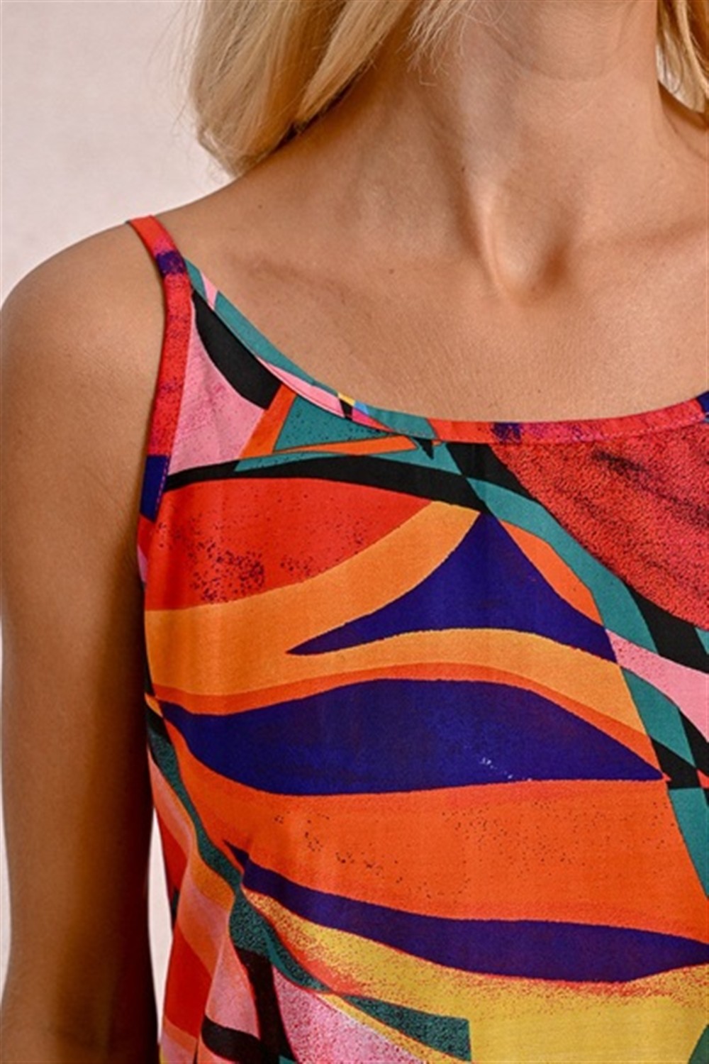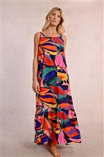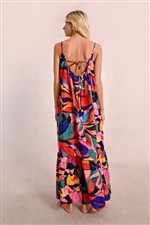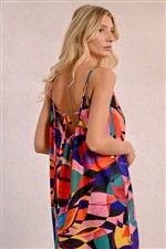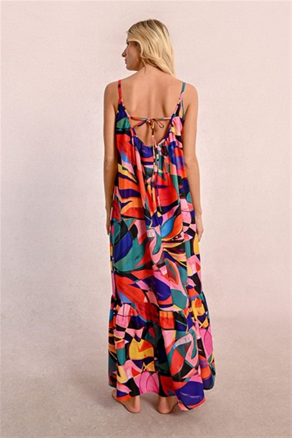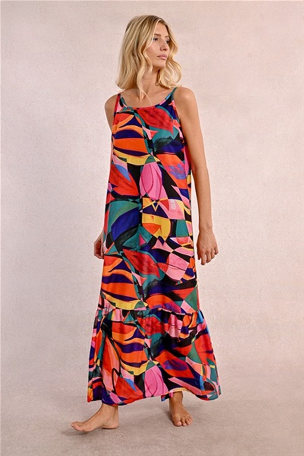 Abito lungo stampato con balza sul fondo e spalline sottili