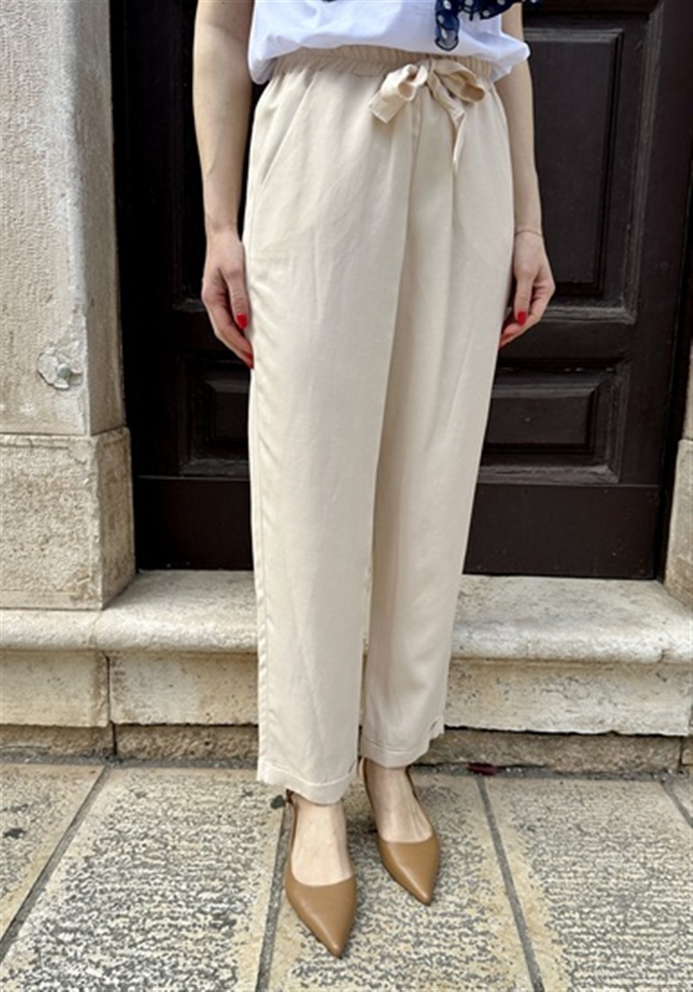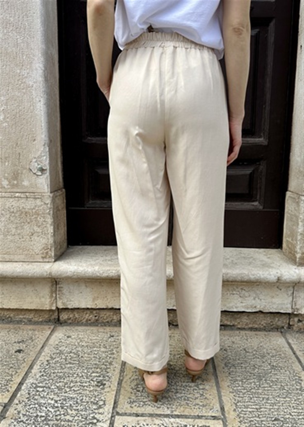 PAVERSI 26 AVORIO Pantalone in misto lino con elastico in vita