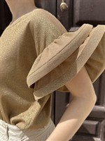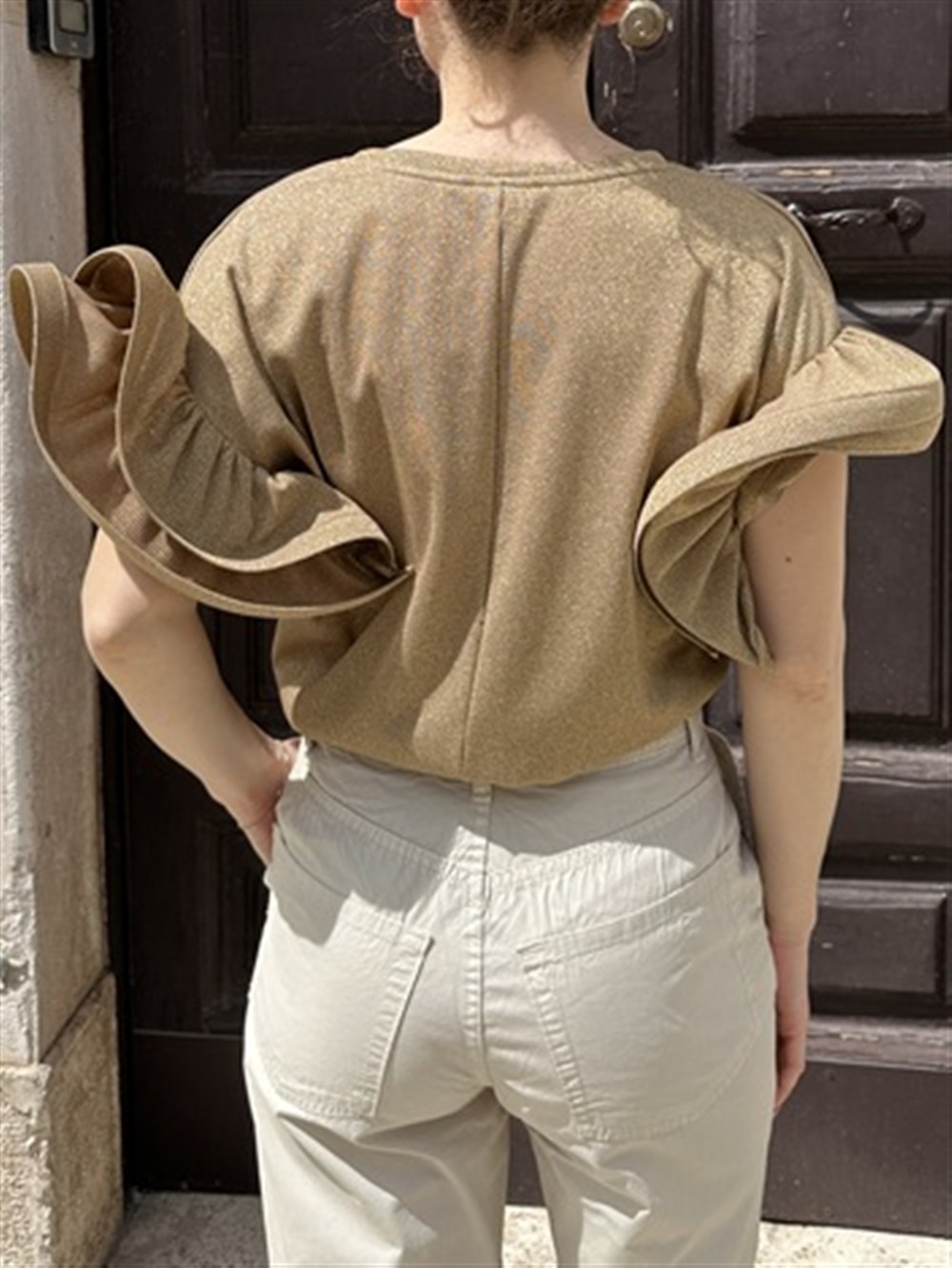 T-shirt in lurex con volant sulle maniche