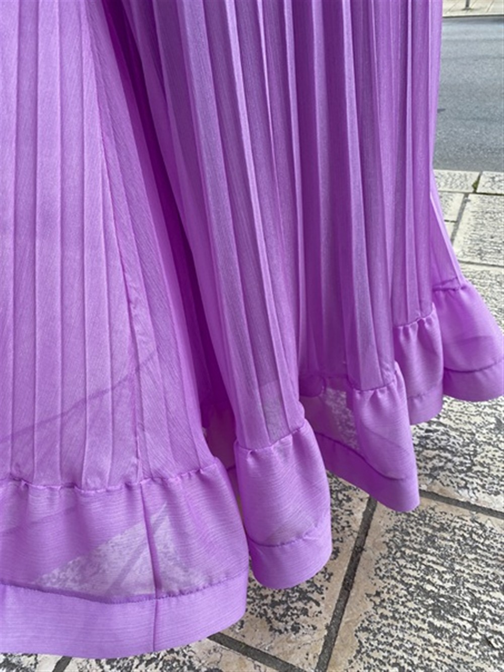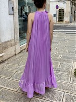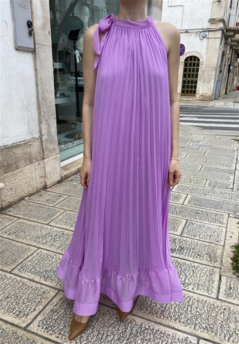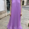 A319W013A LILLA Abito lungo plisse con scollo allamericana in tessuto glitterato