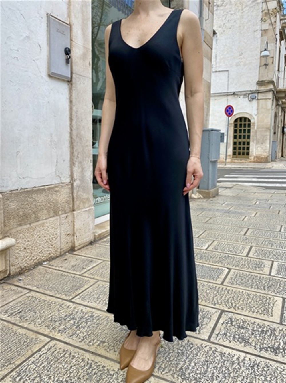 Abito lungo in satin con scollo a v e spalline larghe nero