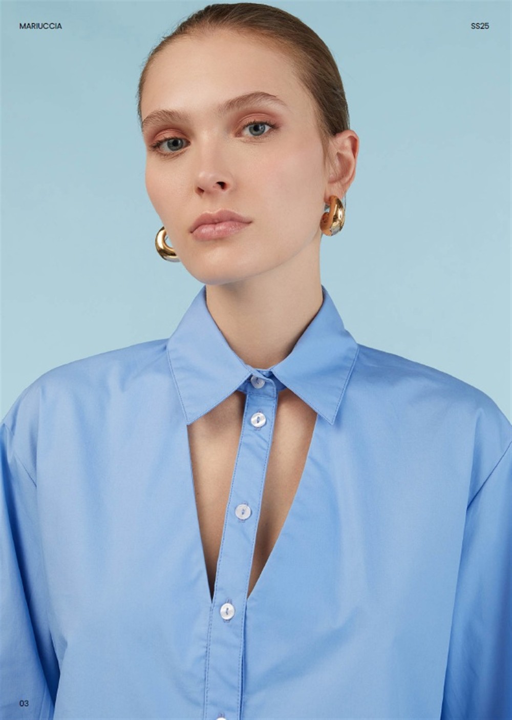 Camicia in popeline con apertura sul davanti cielo