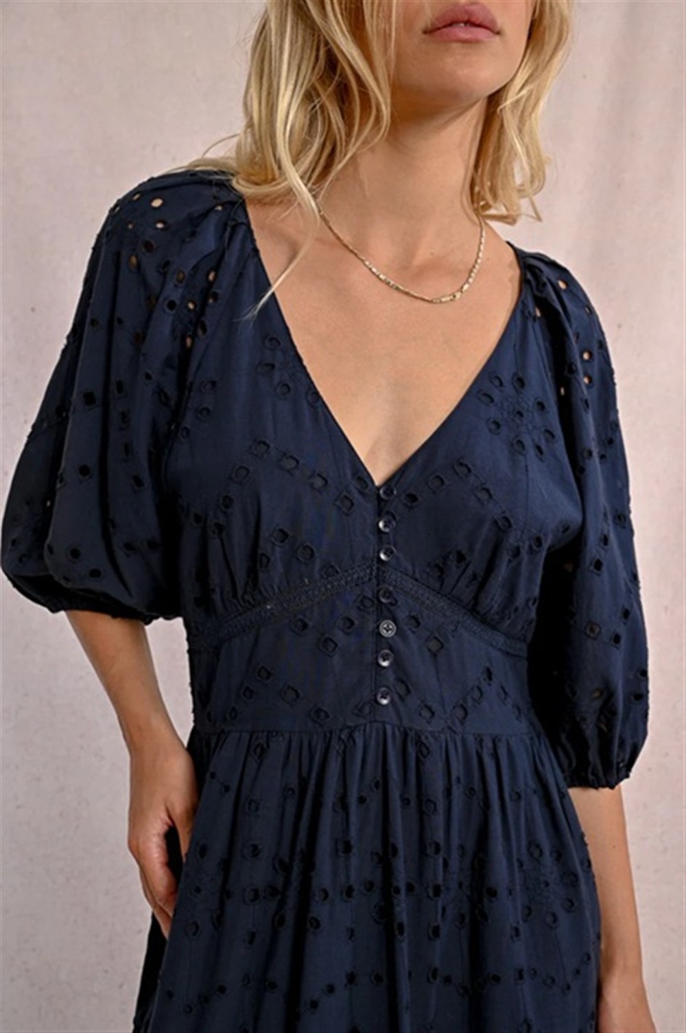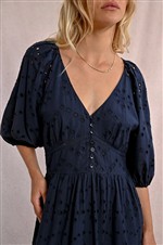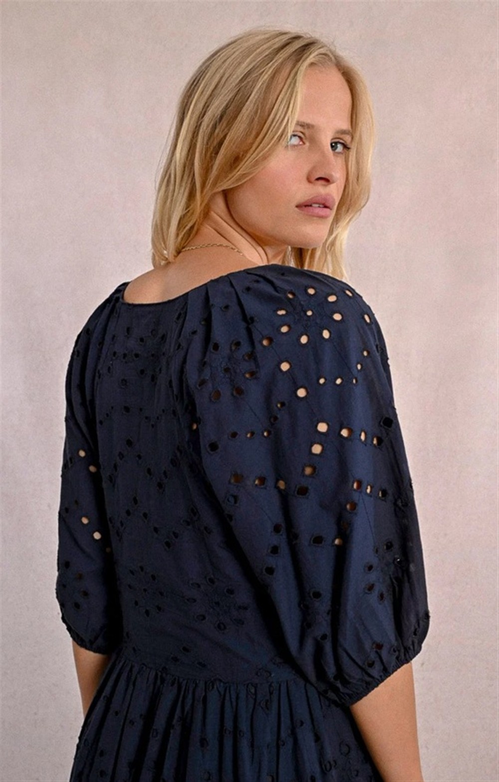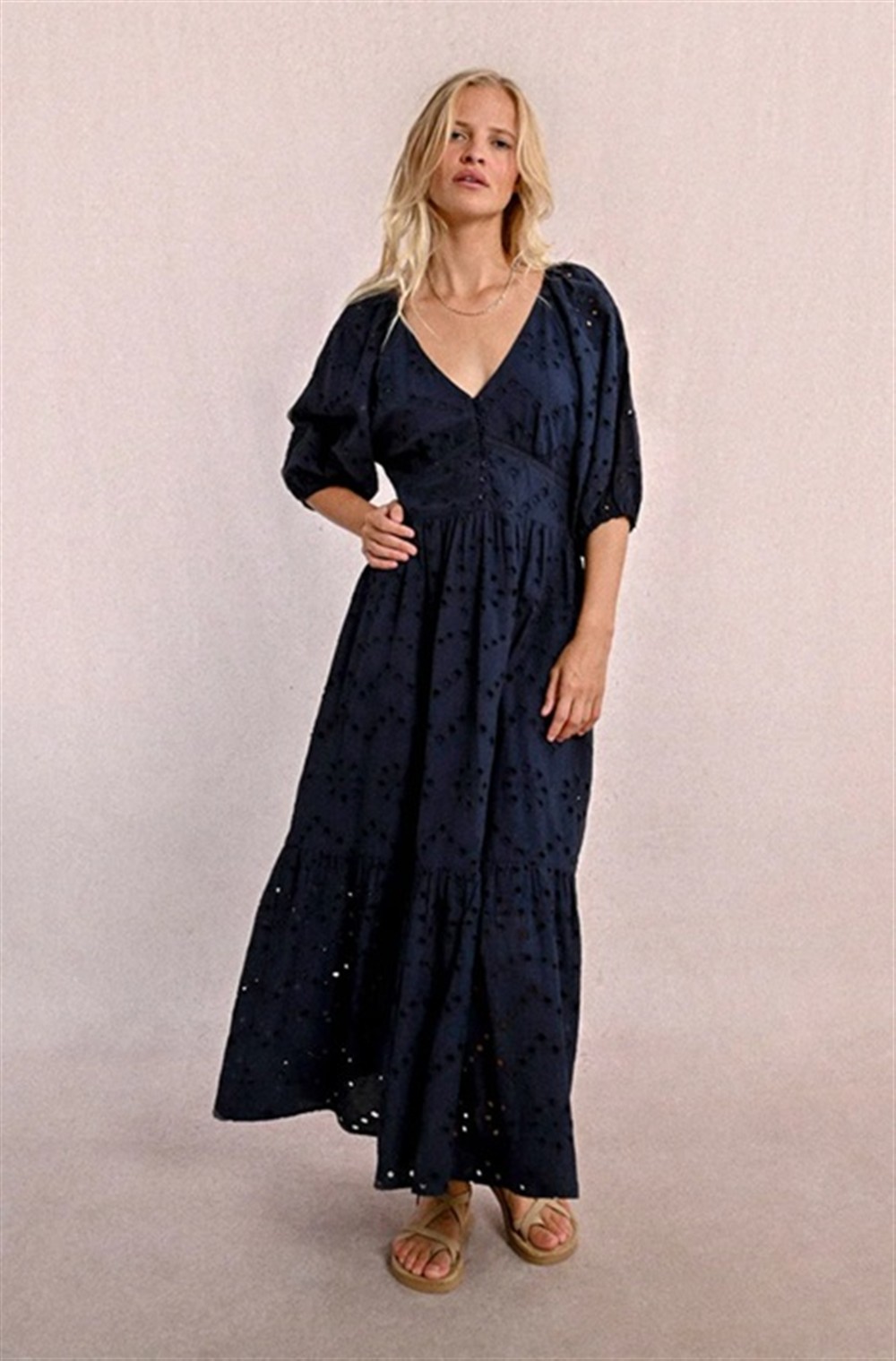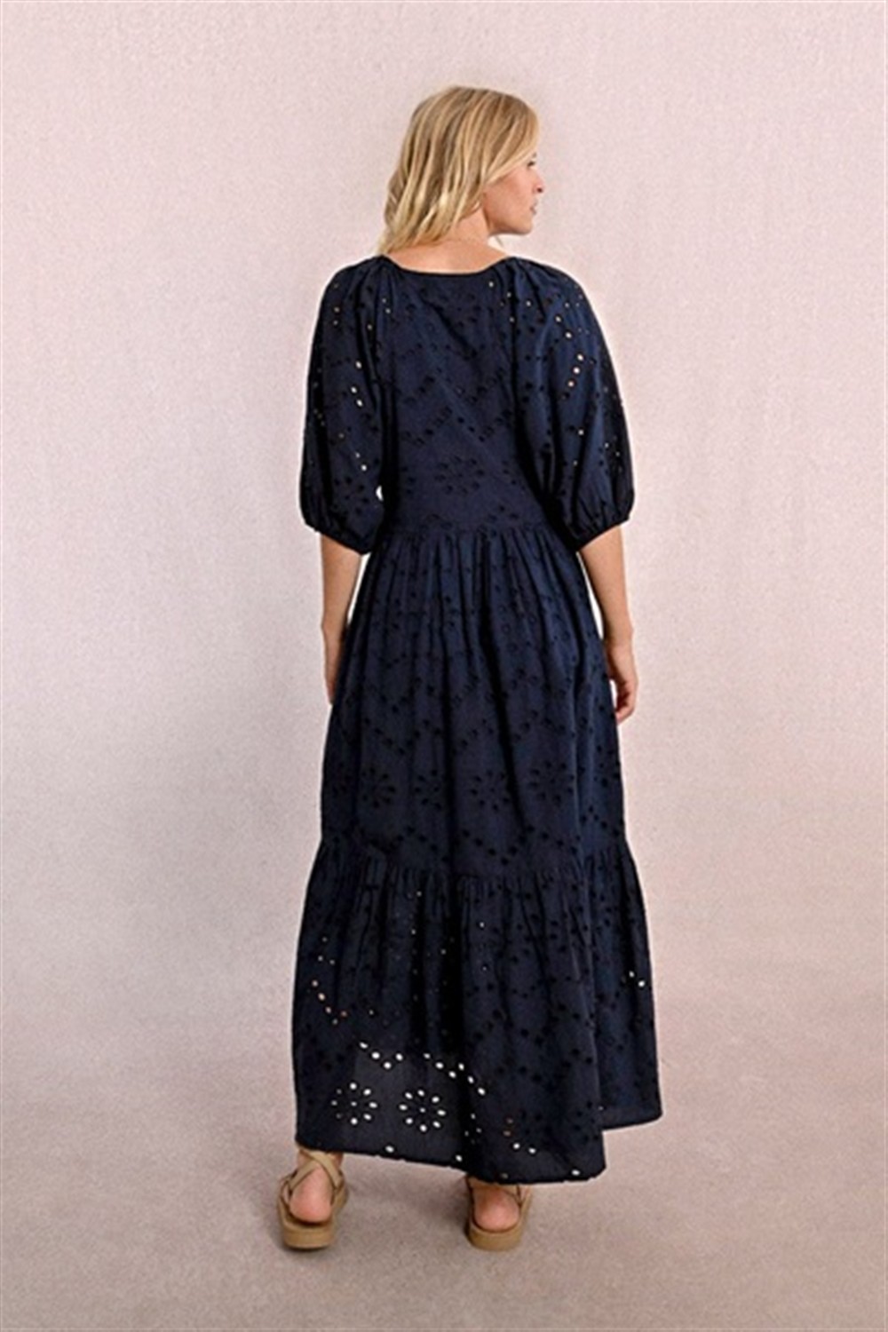 Abito lungo in pizzo sangallo con manica 3/4