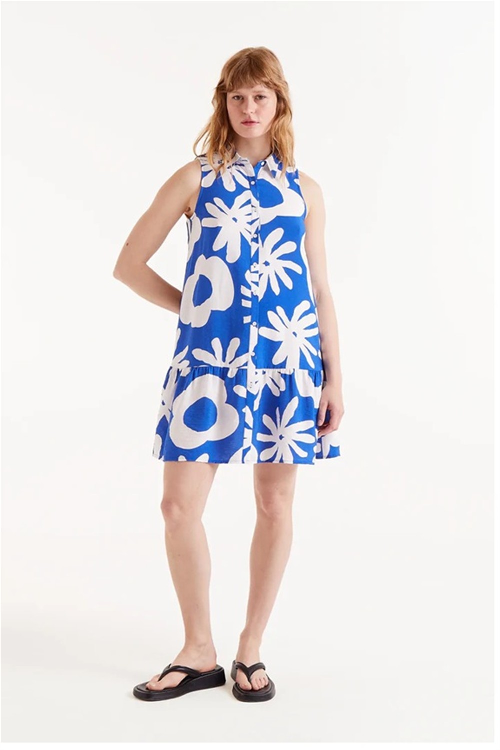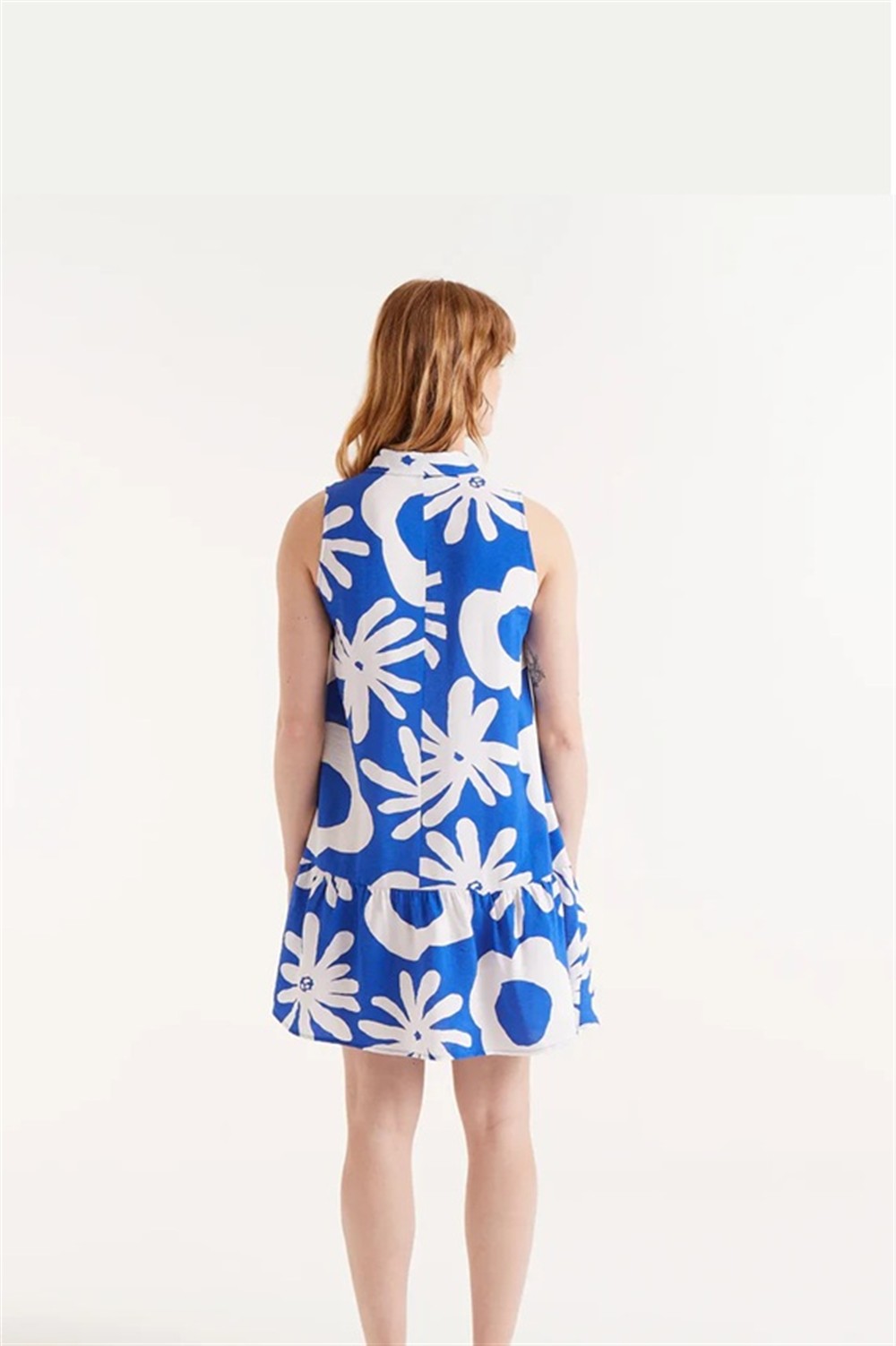 Scamiciato corto a fantasia floreale con balza al fondo