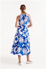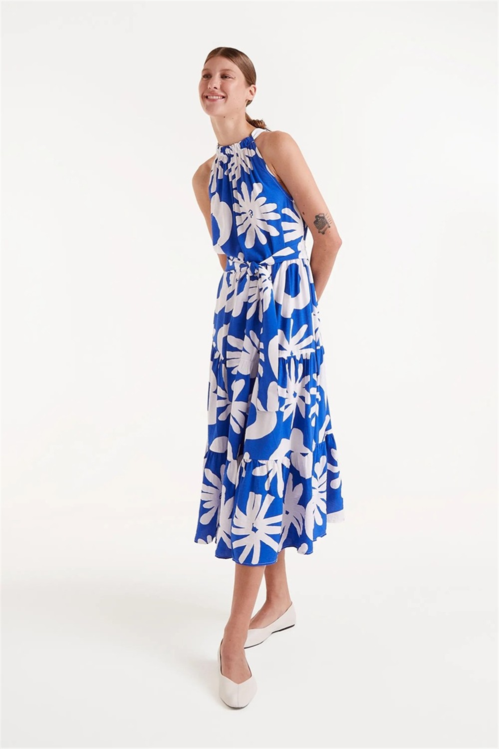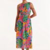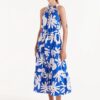 Abito midi a fantasia floreale con scollo all’americana