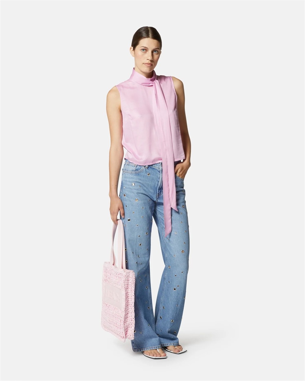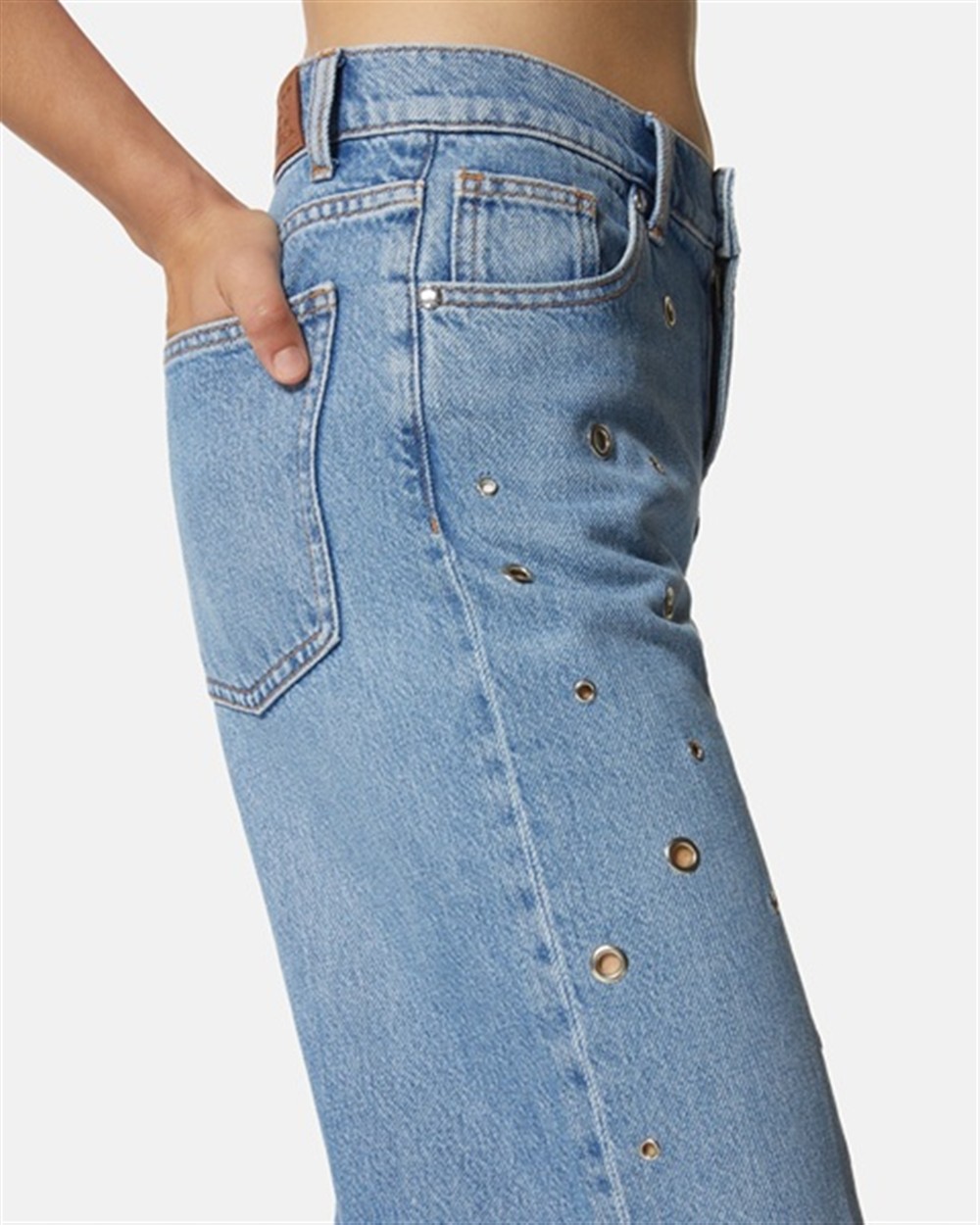 Jeans gamba dritta con applicazioni metalliche