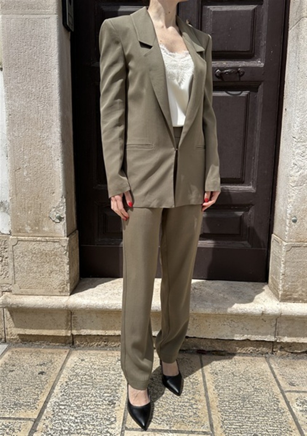 P3485 KAKI – Pantalone morbido a sigaretta con elastico sul retro della vita