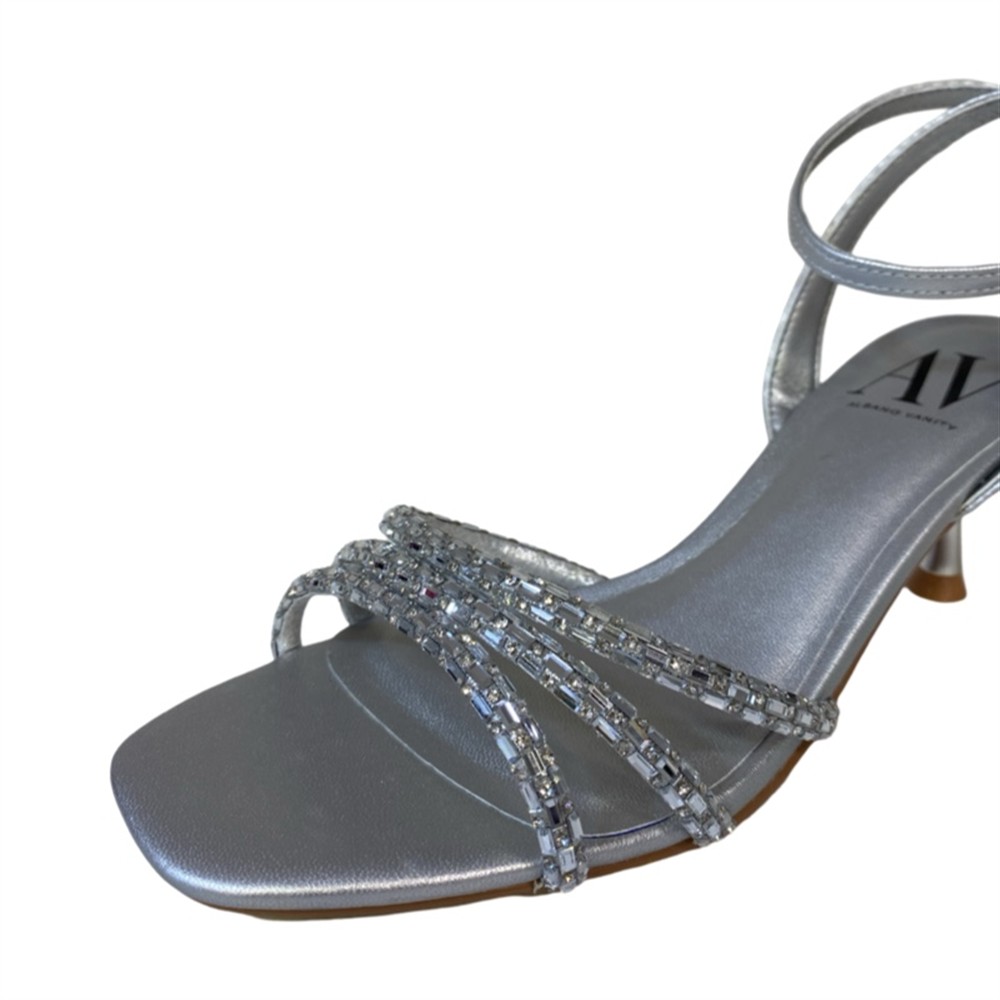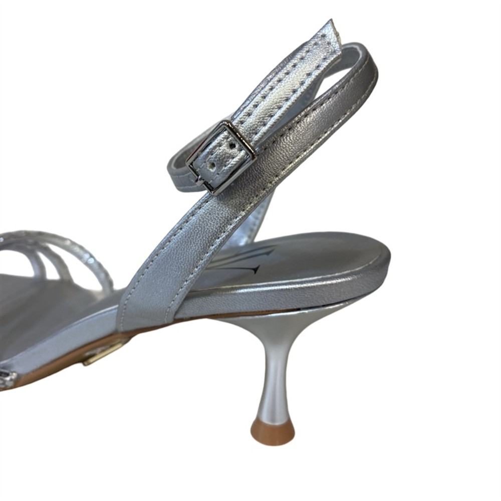 AV6805 SILVER Sandalo a punta quadra con fascette gioiello e tacco 5 cm