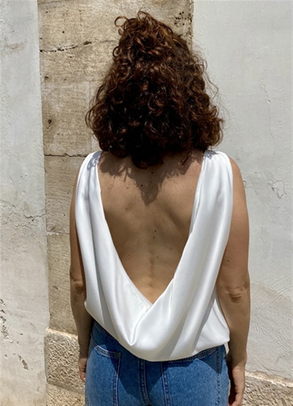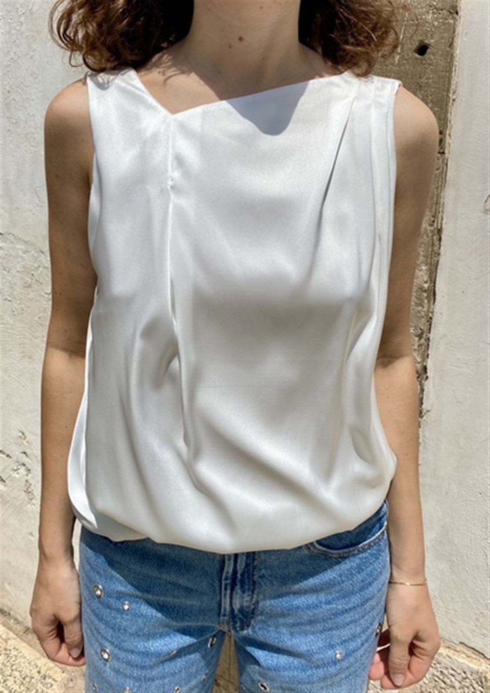 Top con scollatura asimmetrica e scollo morbido posteriore bianco