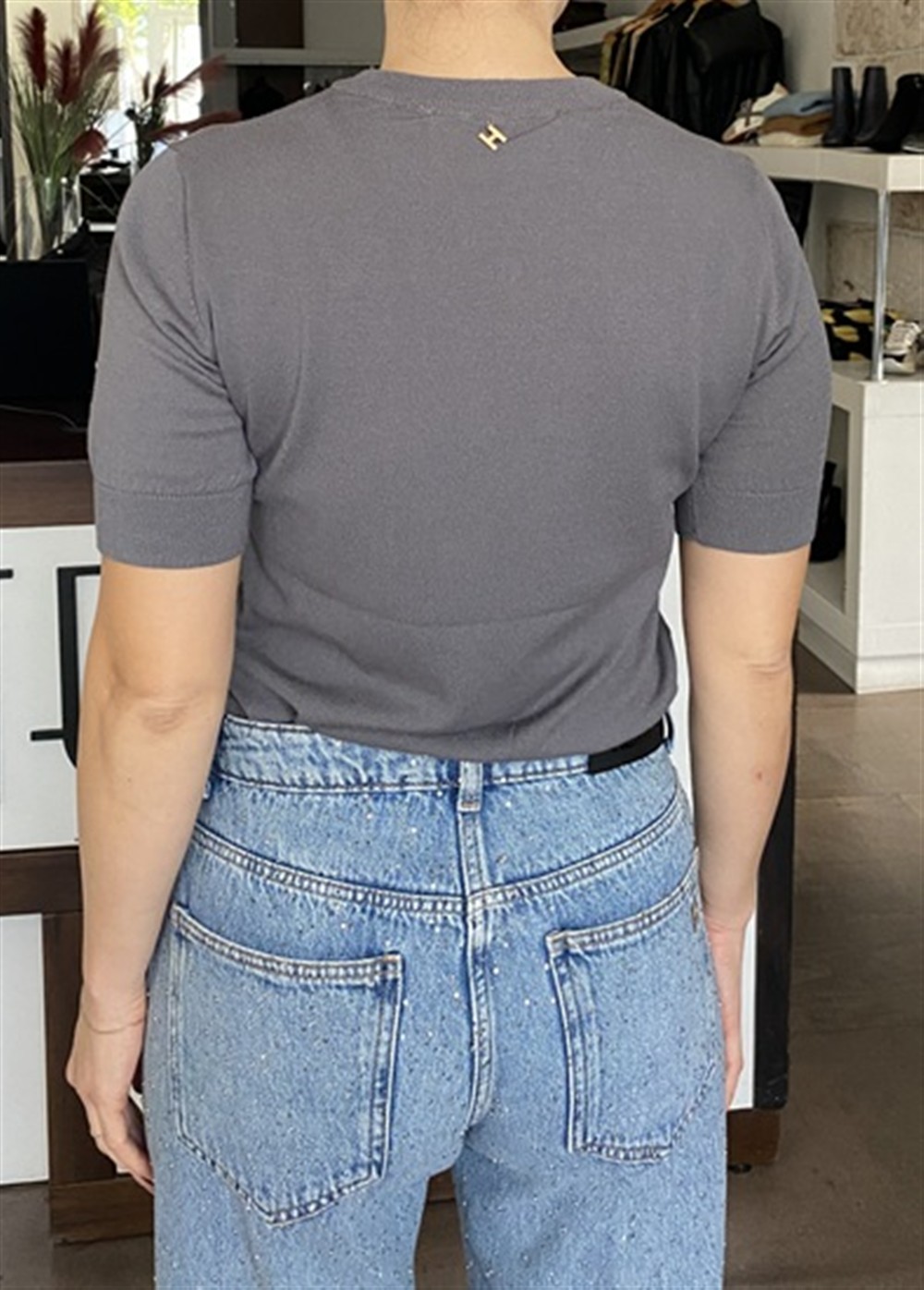 Maglioncino basic paricollo mezza manica GREY STEEL
