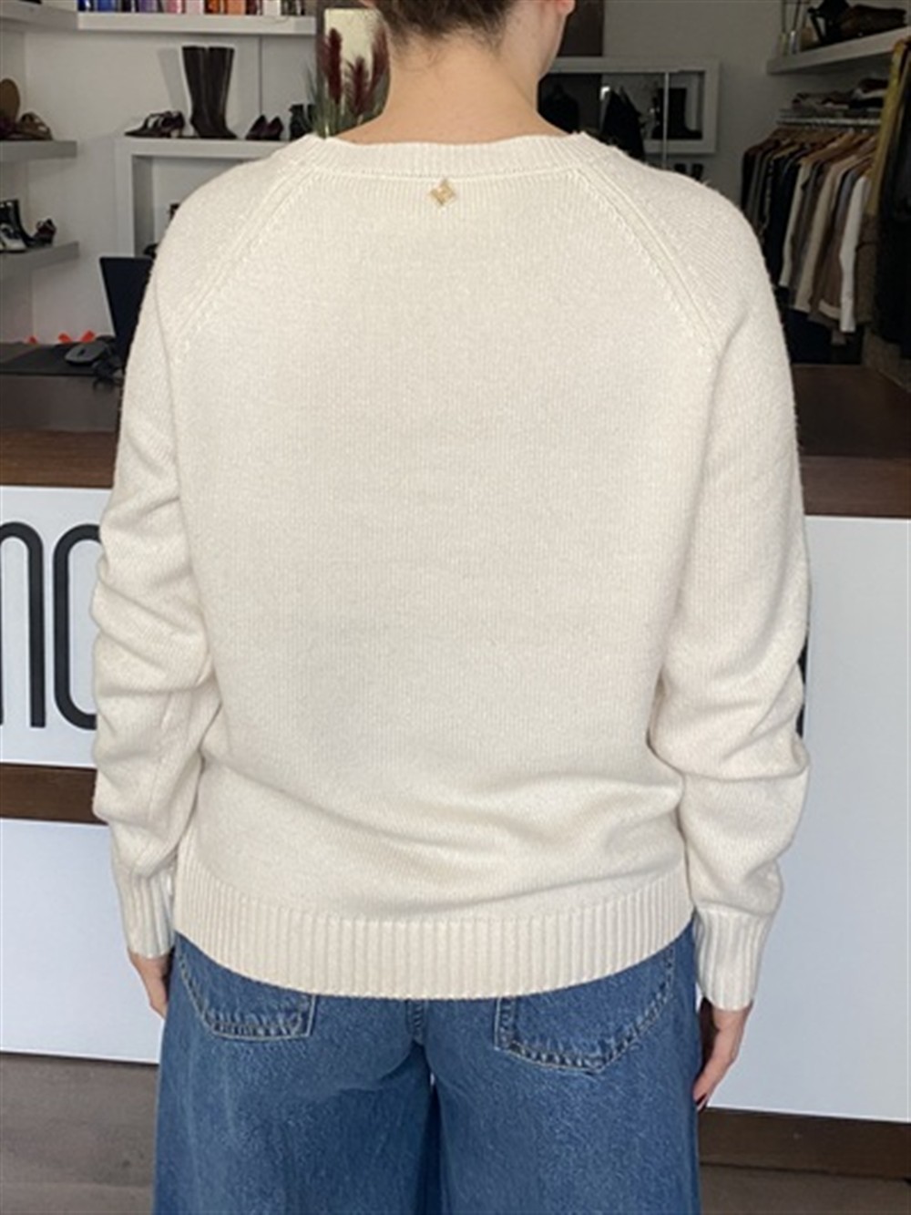 Maglioncino a scatola ottoni sul lato sinistro CHALK