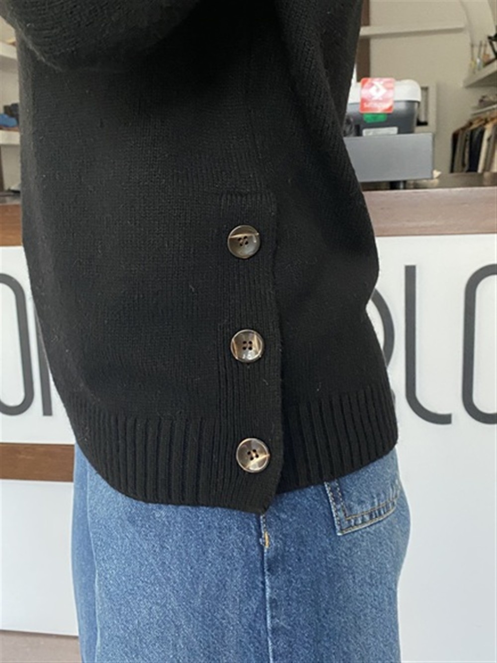Maglioncino a scatola ottoni sul lato sinistro BLACK