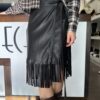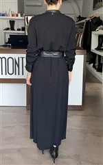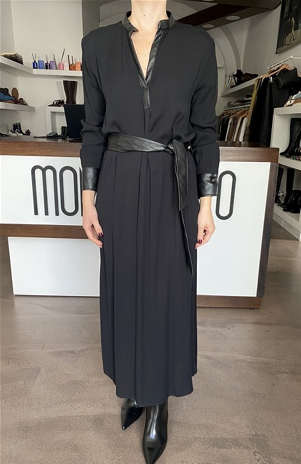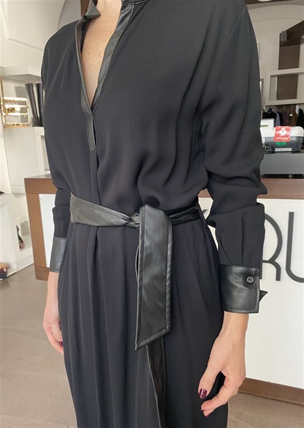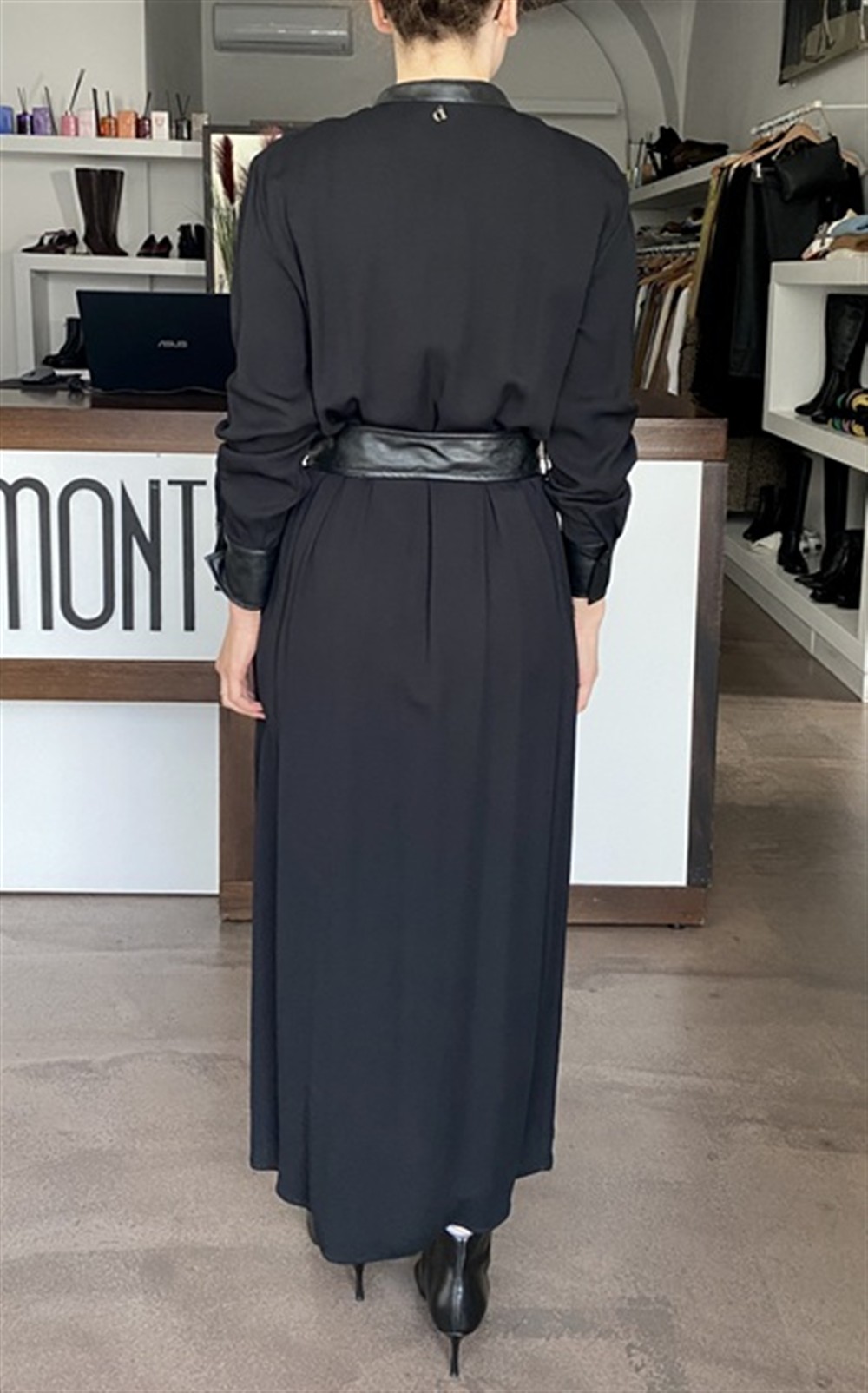 Abito lungo con dettagli e cintura in ecopelle in tinta