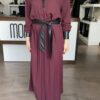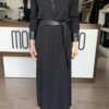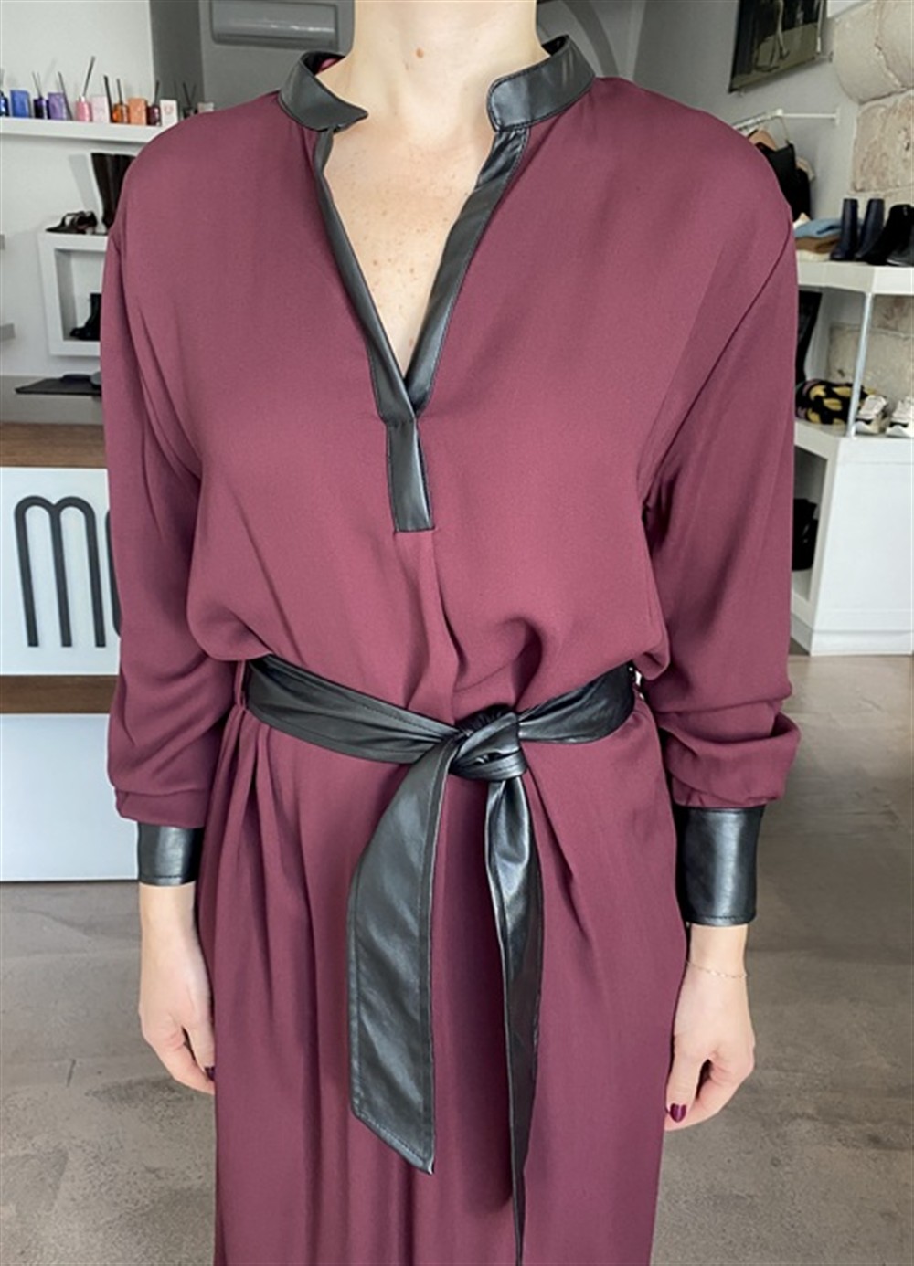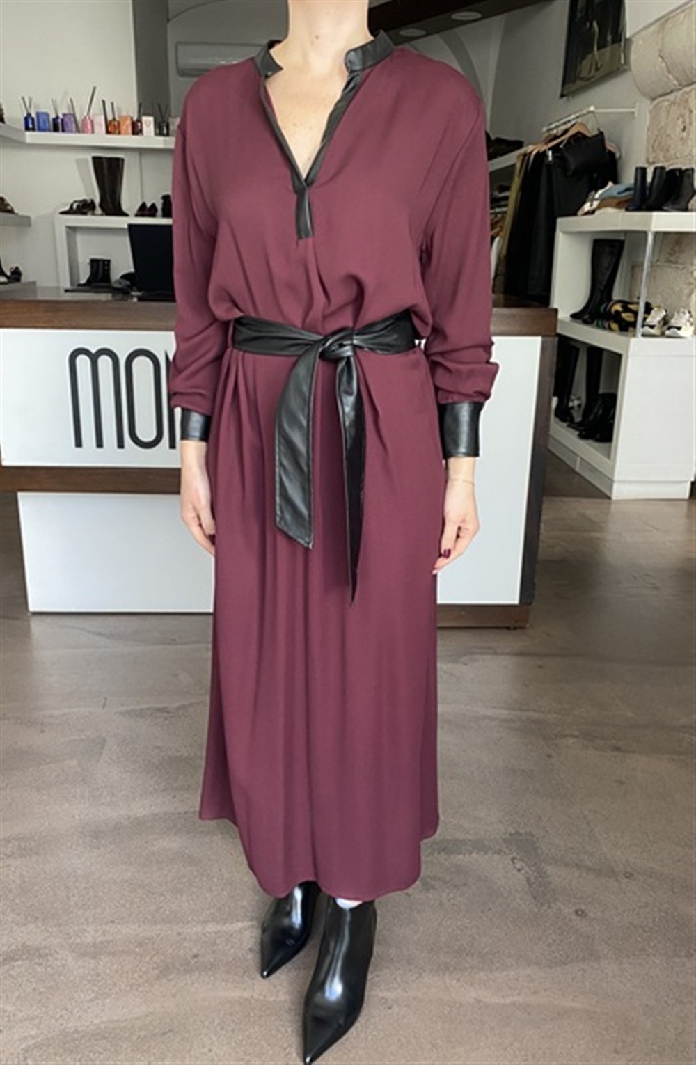 Abito lungo con dettagli e cintura in ecopelle a contrasto