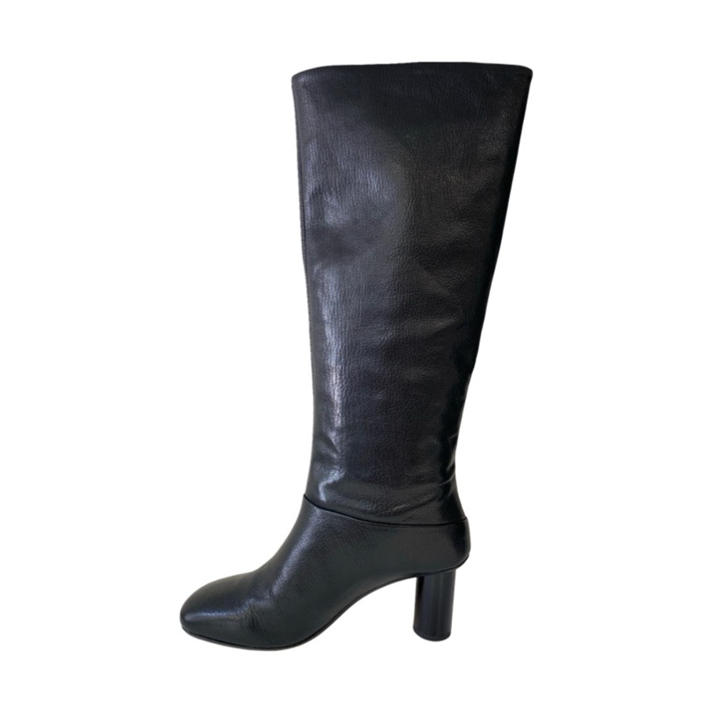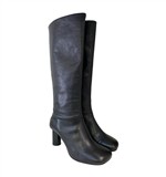 Stivale a punta quadra asimmetrica con tacco a cilindro di 7 cm