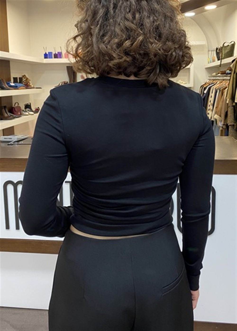EFW250238 NERO Maglia crop con drappeggi laterali