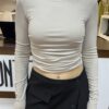 EFW250238 BEIGE Maglia crop con drappeggi laterali