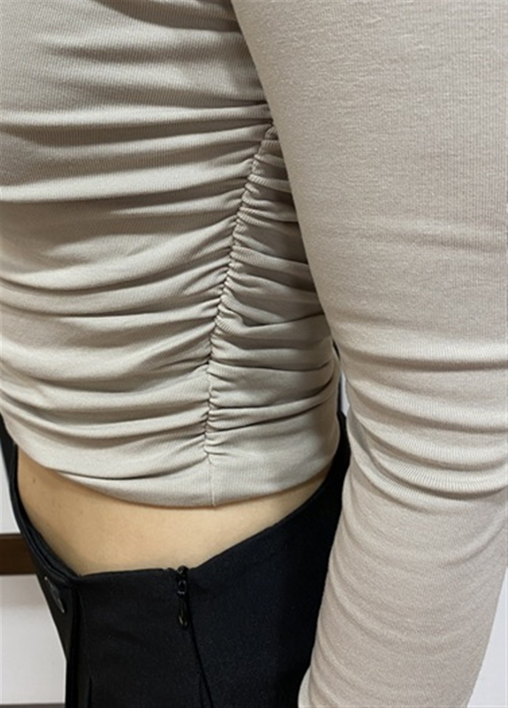 Maglia crop con drappeggi laterali BEIGE