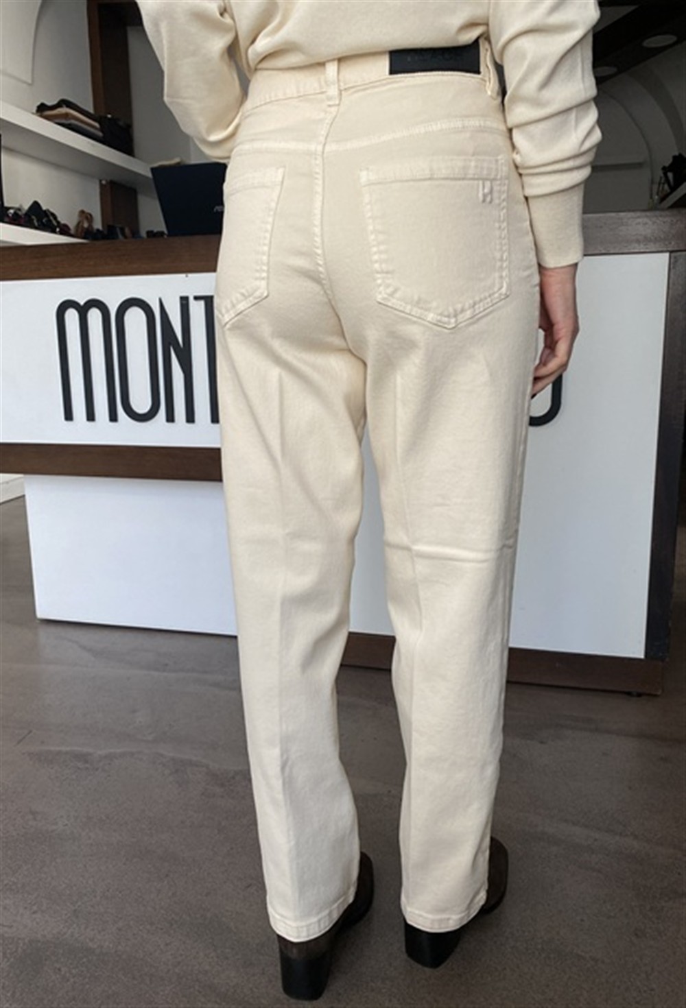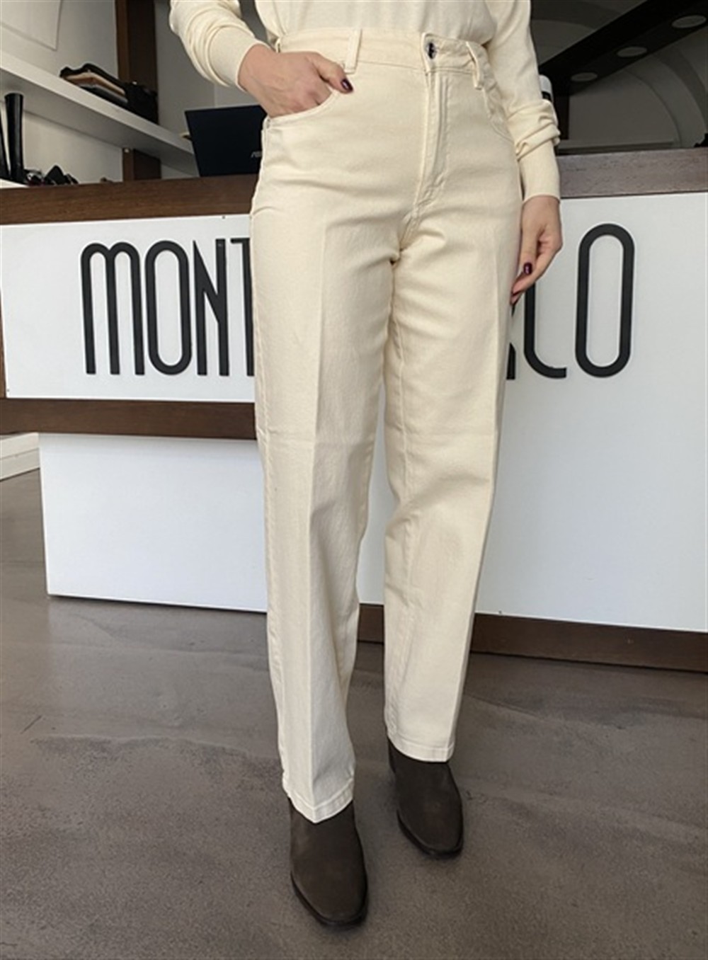 Pantalone in bull denim gamba dritta 5 tasche CHALK