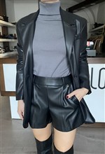 Shorts in ecopelle con elastico sul retro del cinto