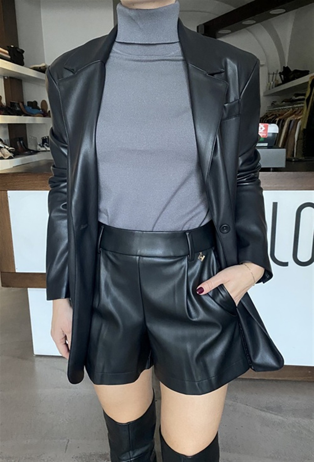 GPA25075SHFCI Shorts in ecopelle con elastico sulla parte posteriore del cinto