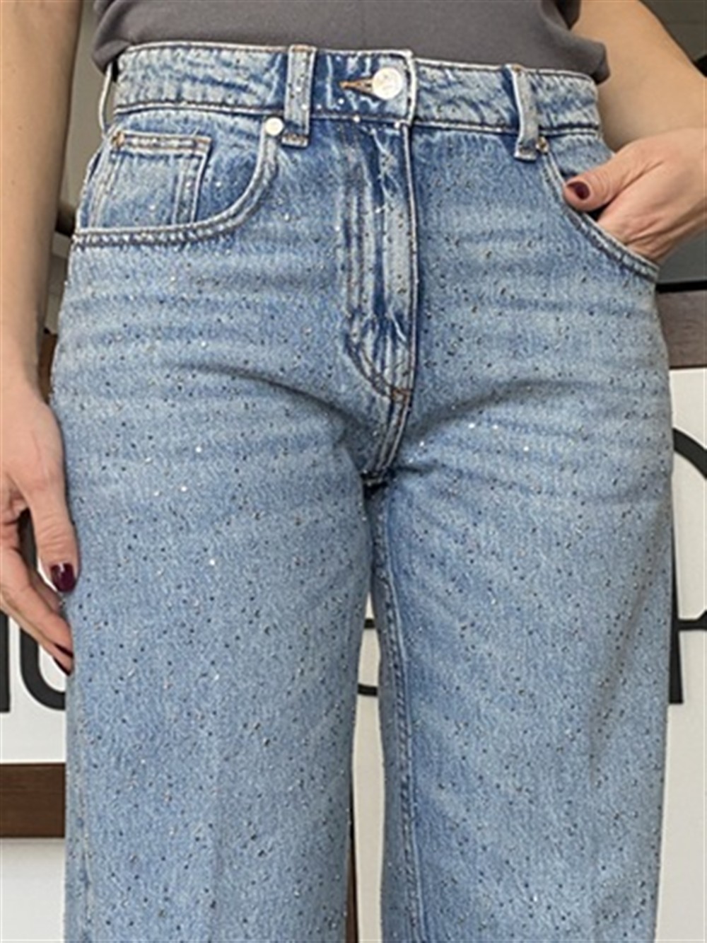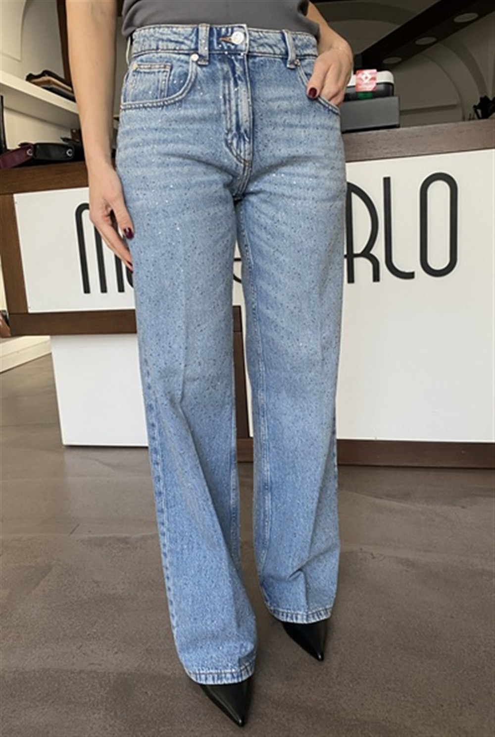 Jeans gamba dritta con strass DENIM BLUE LIGHT