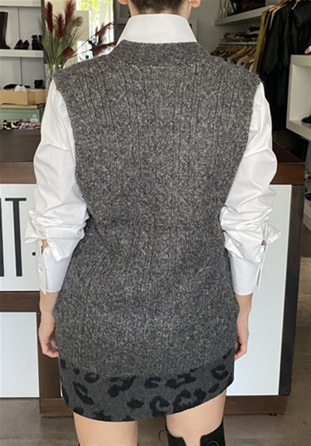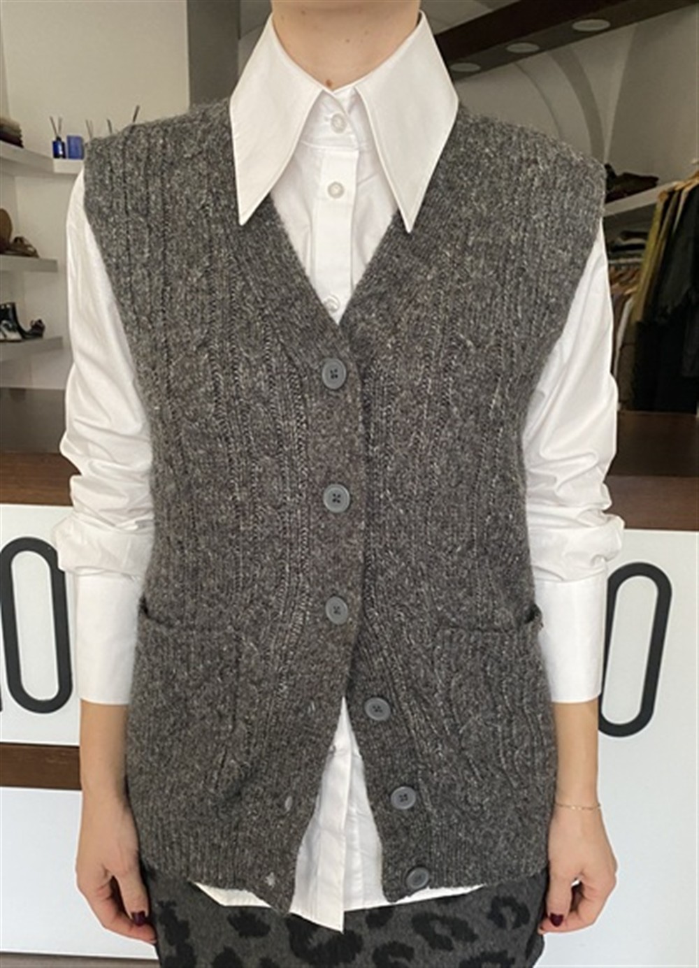 Gilet in maglia a trecce con tasce frontali