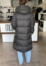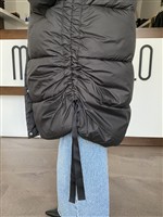 Piumino midi con cappuccio e coulisse laterali al fondo