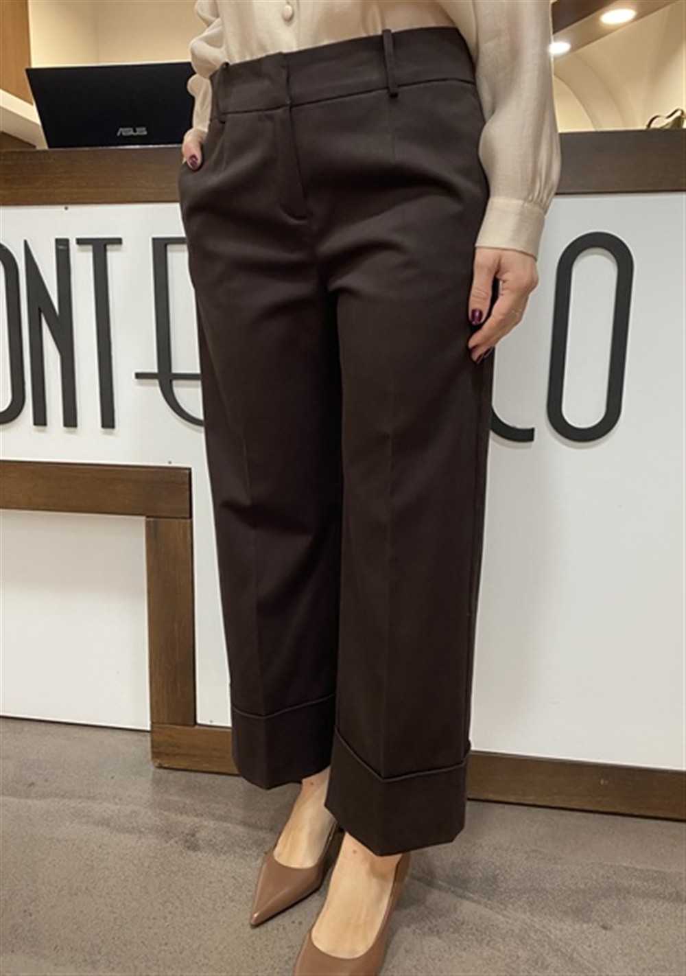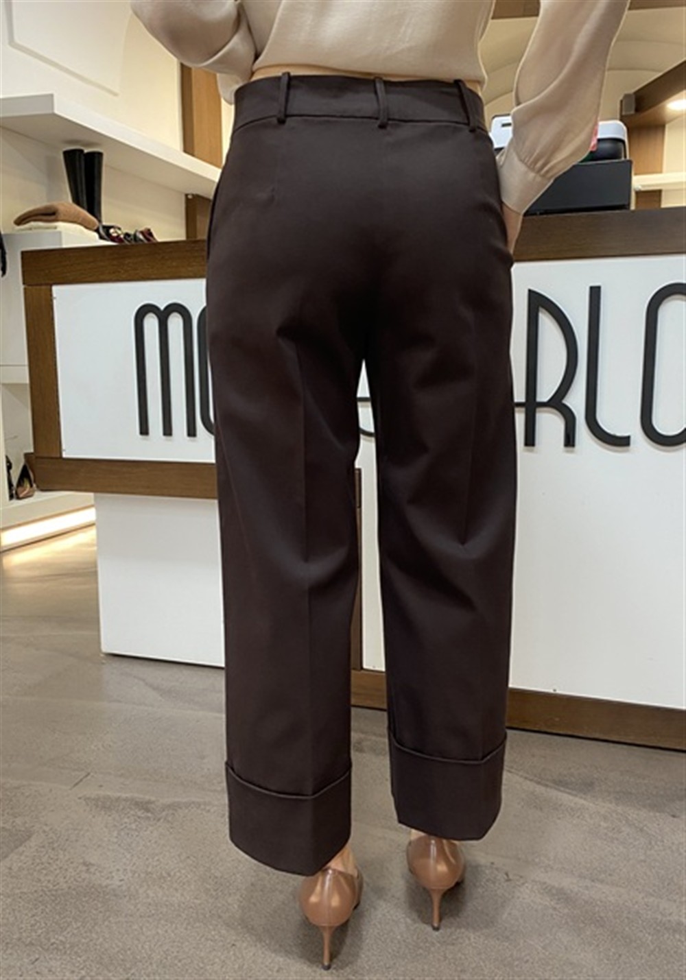 T0948 CACAO Pantalone in gabardina elasticizzata dalla gamba dritta e piegone al fondo
