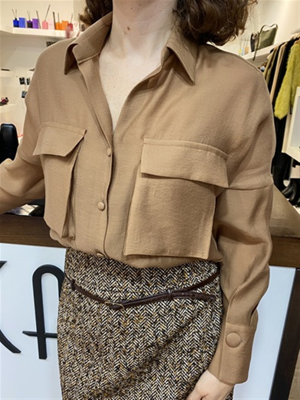 Camicia in chiffon di viscosa con tasconi BISCOTTO