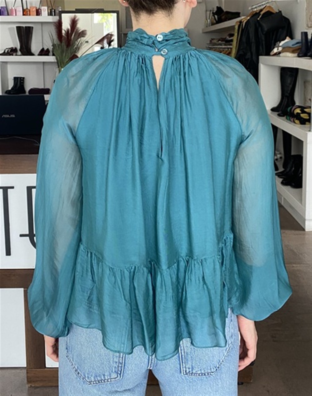 C207Y016A PAVONE Blusa in misto seta con balza e colletto drappeggiato