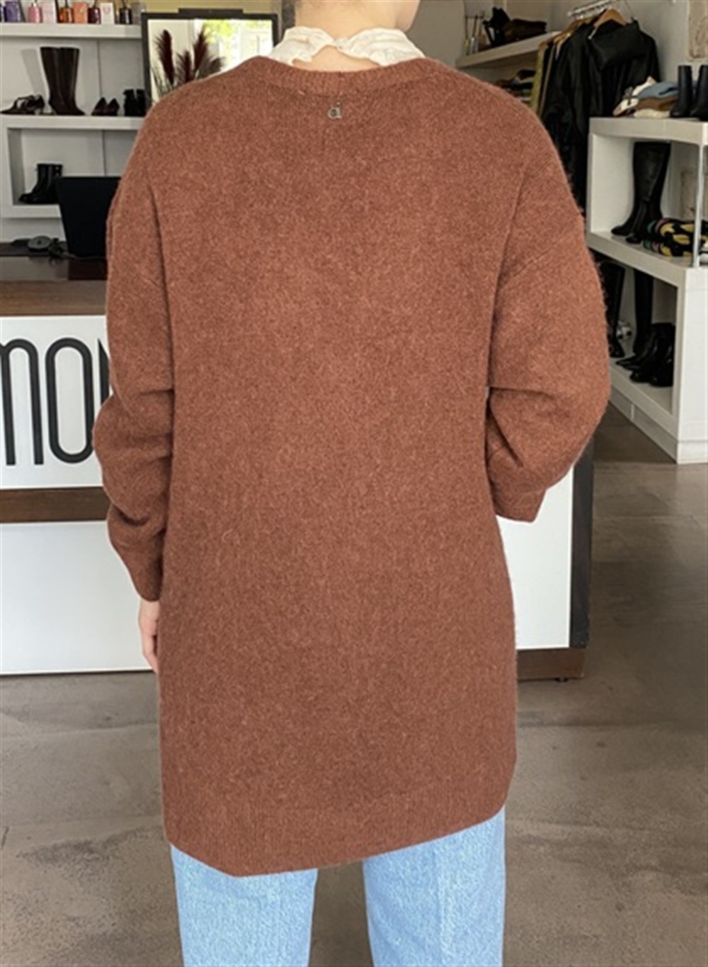 M277Y070A CAFFE Cardigan media lunghezza in baby alpaca con bottone gioiello
