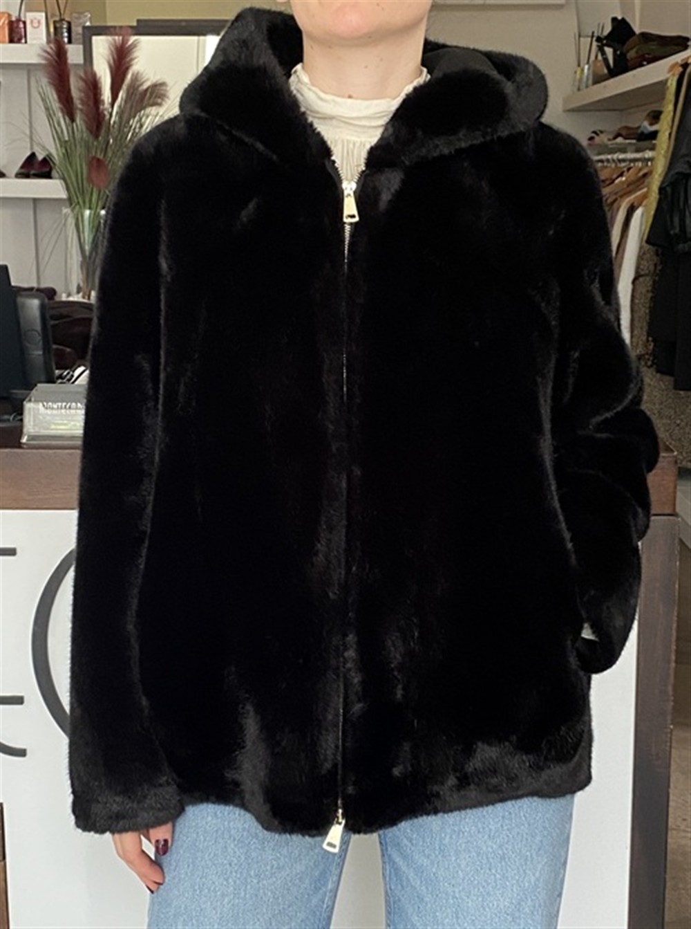 V330Y003A NERO Ecopelliccia con zip e cappuccio
