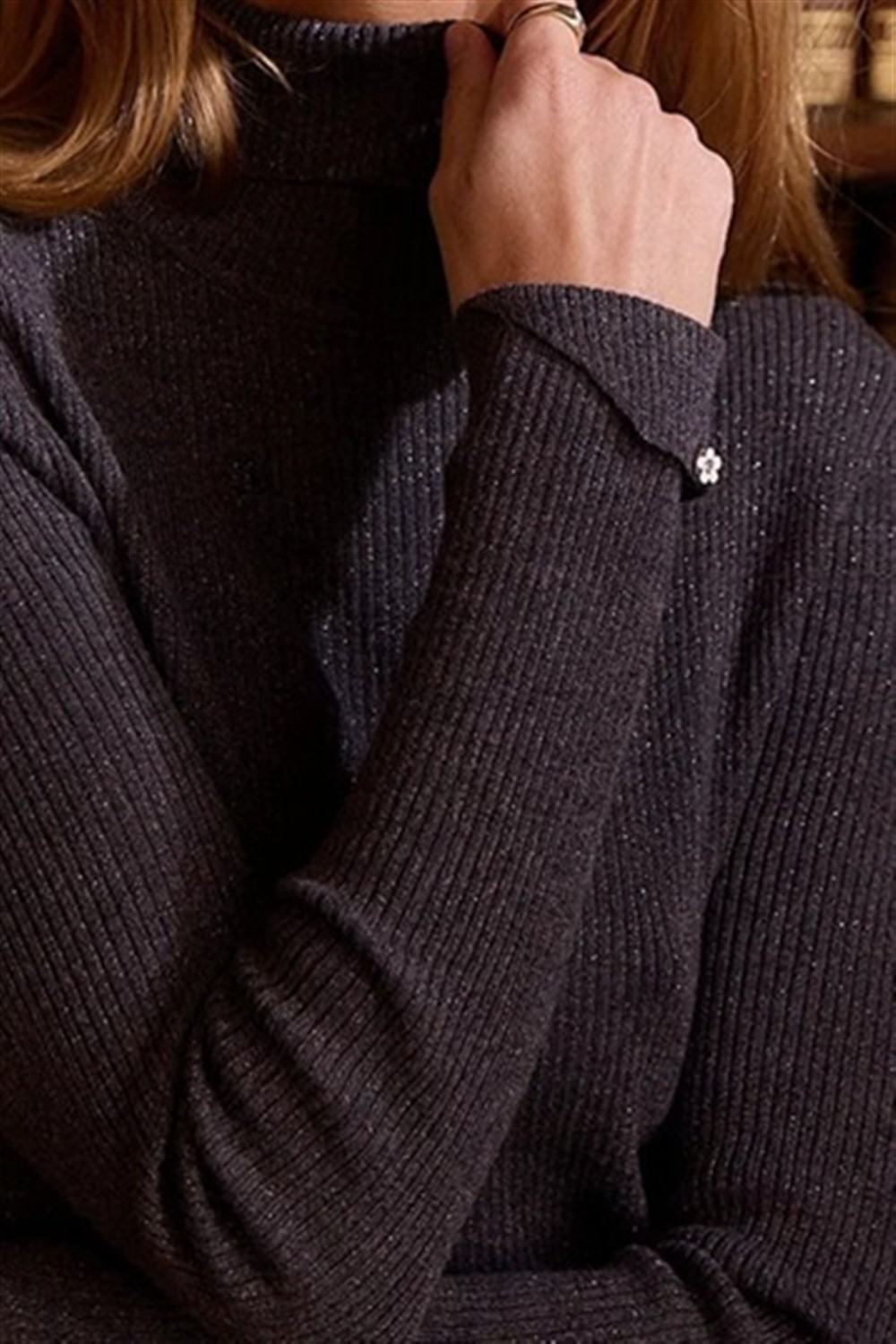 Dolcevita a costine in lurex DARK GREY