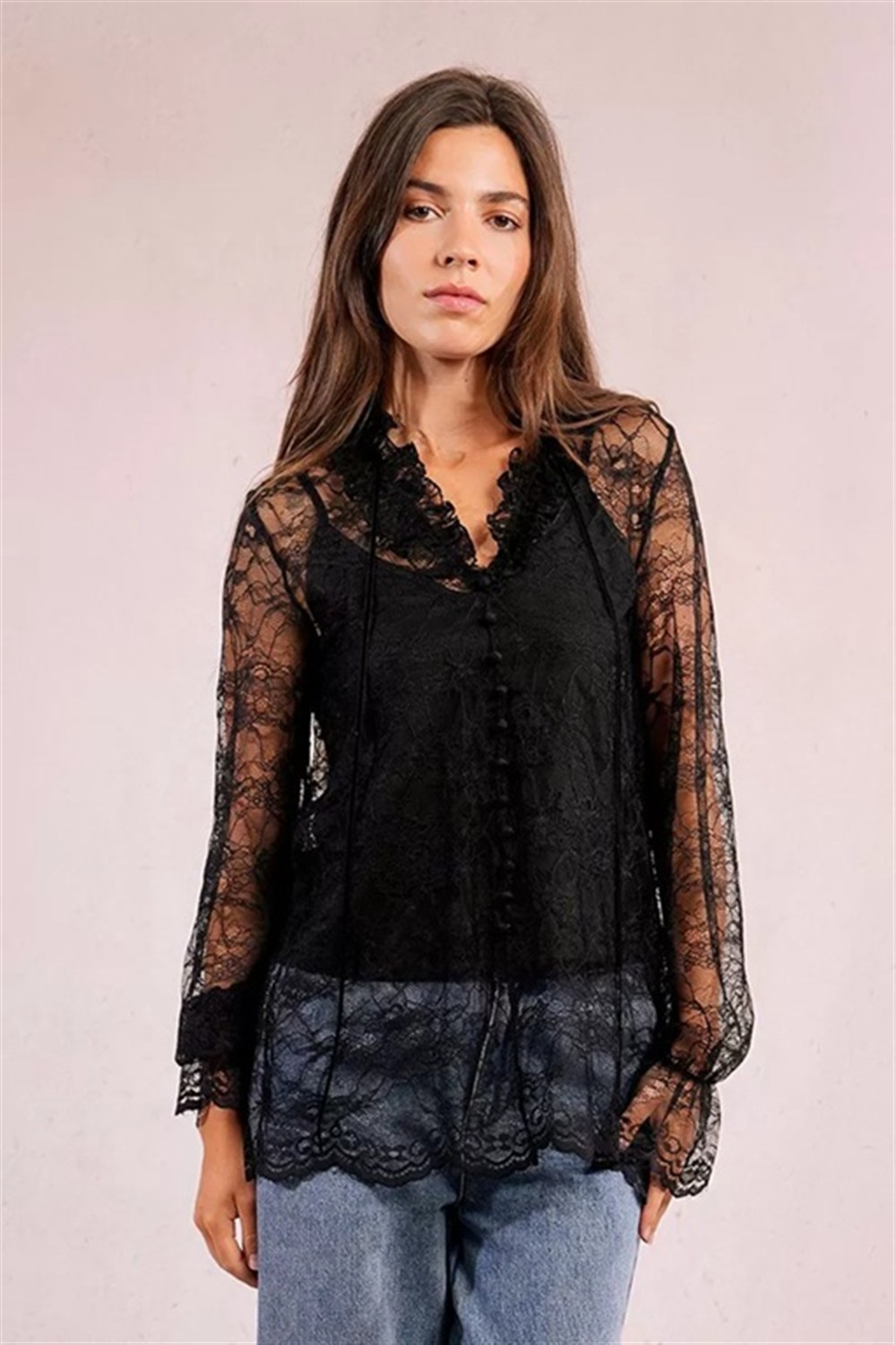 Camicia in pizzo con top incluso