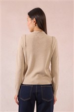 T2113DN BEIGE Maglioncino con bottoni e riprese effetto spallina