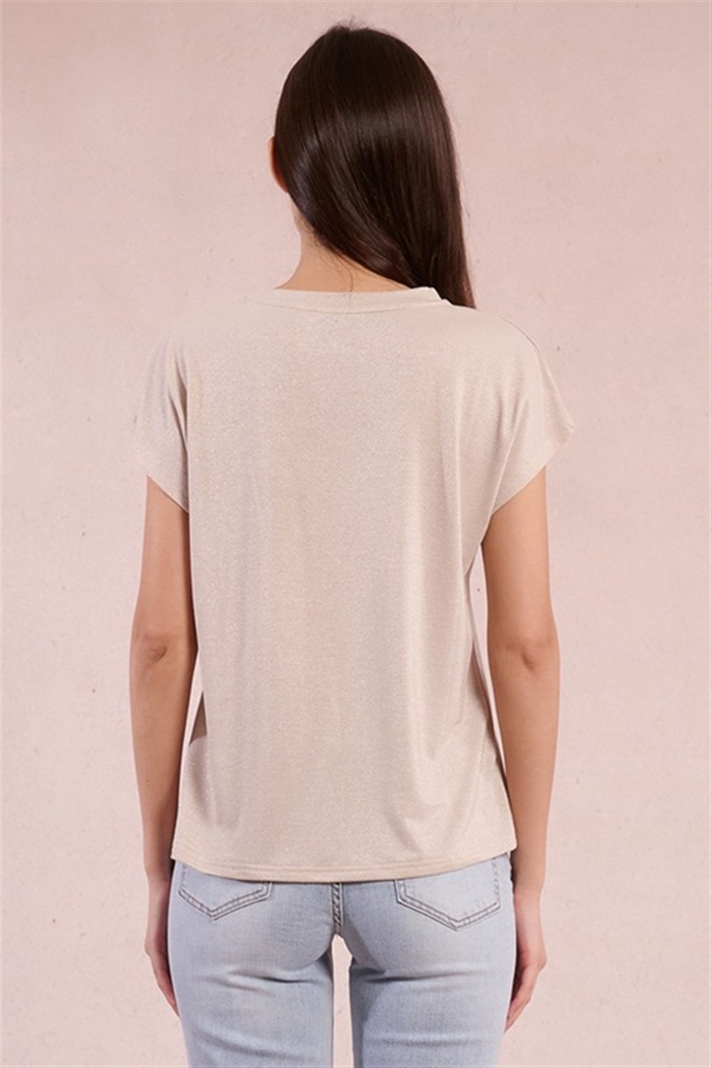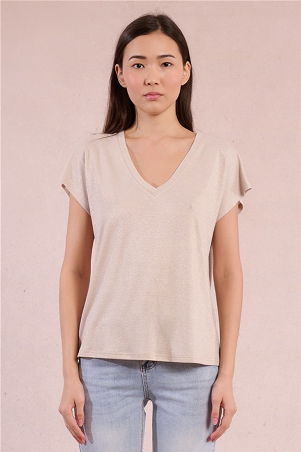 T-shirt in lurex con scollo a v