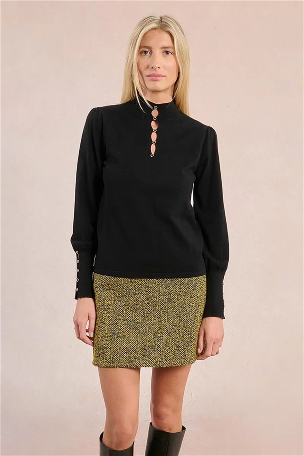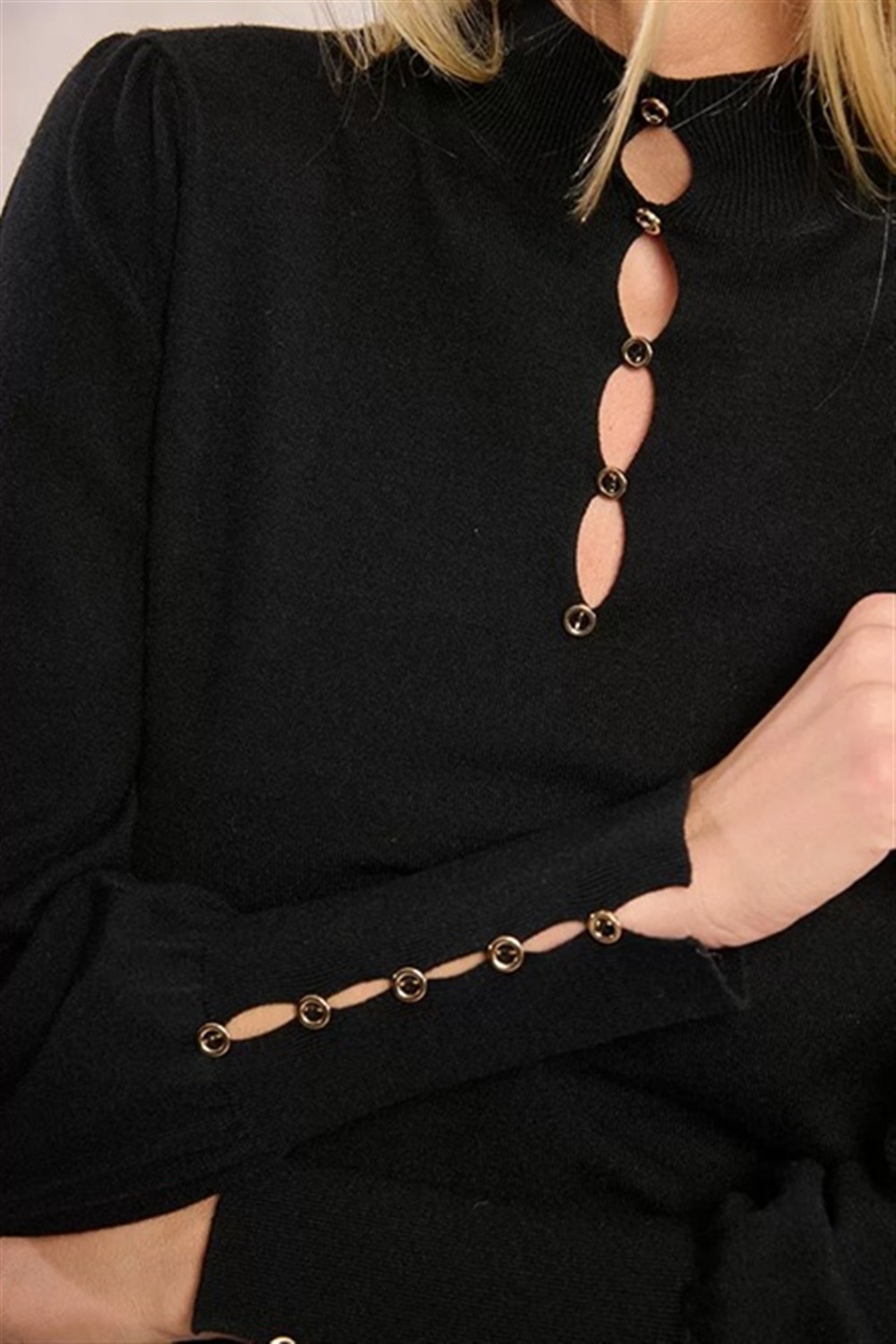 Maglioncino con bottoni ed aperture frontali BLACK
