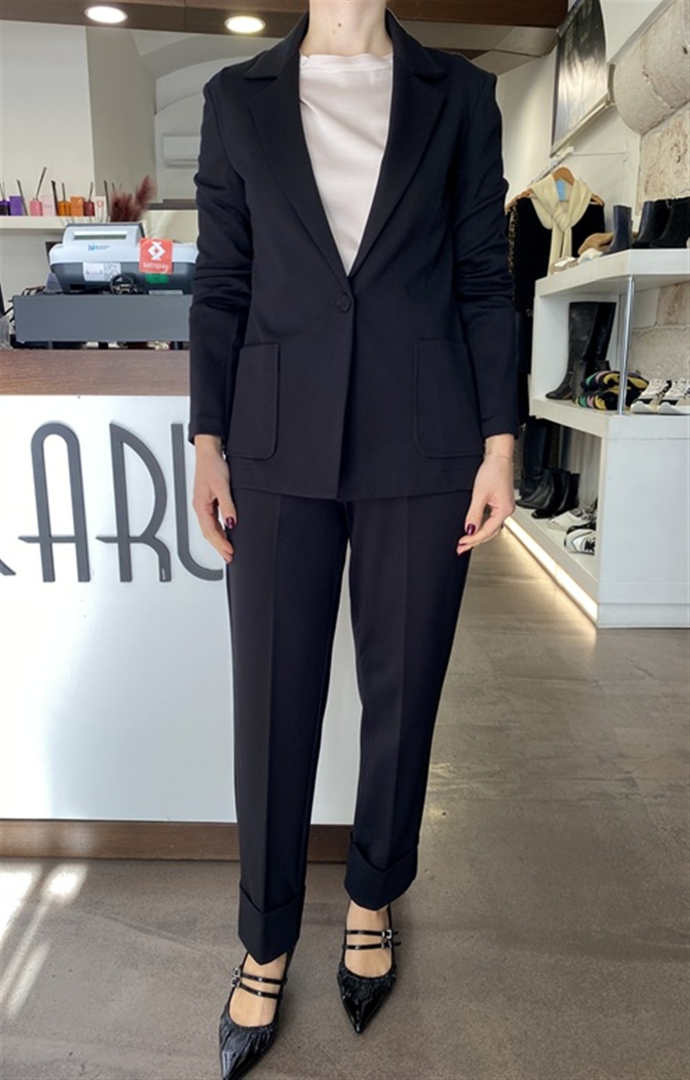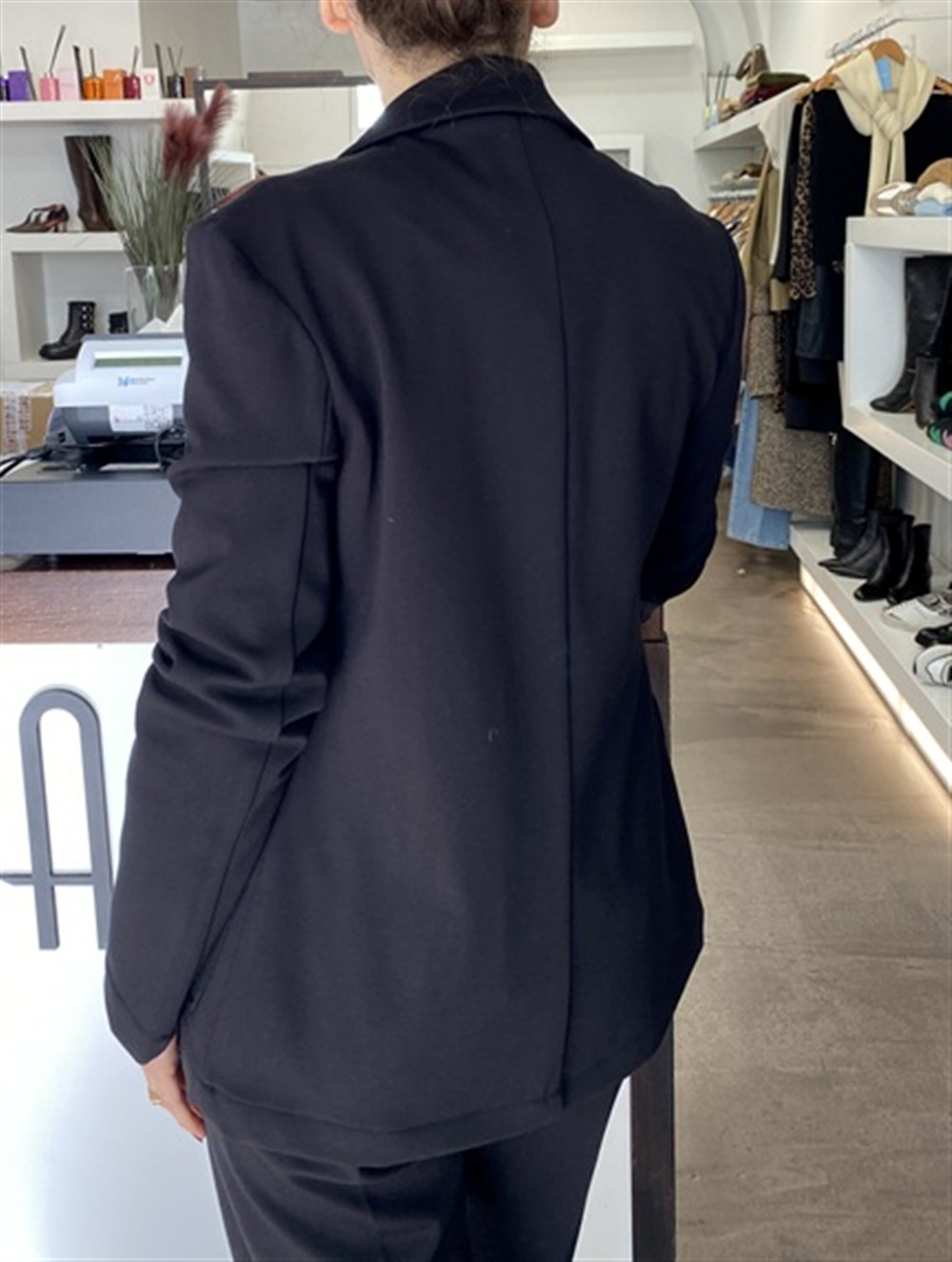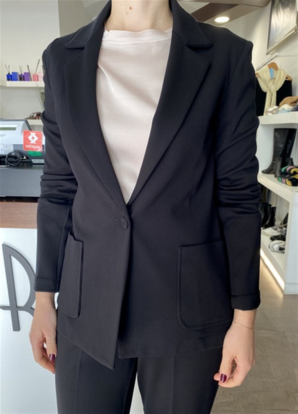 Giacca monopetto in tessuto stretch con tasche frontali NERA