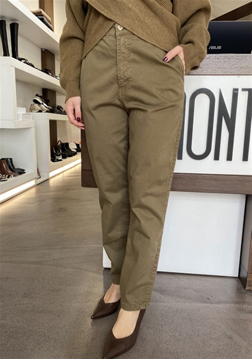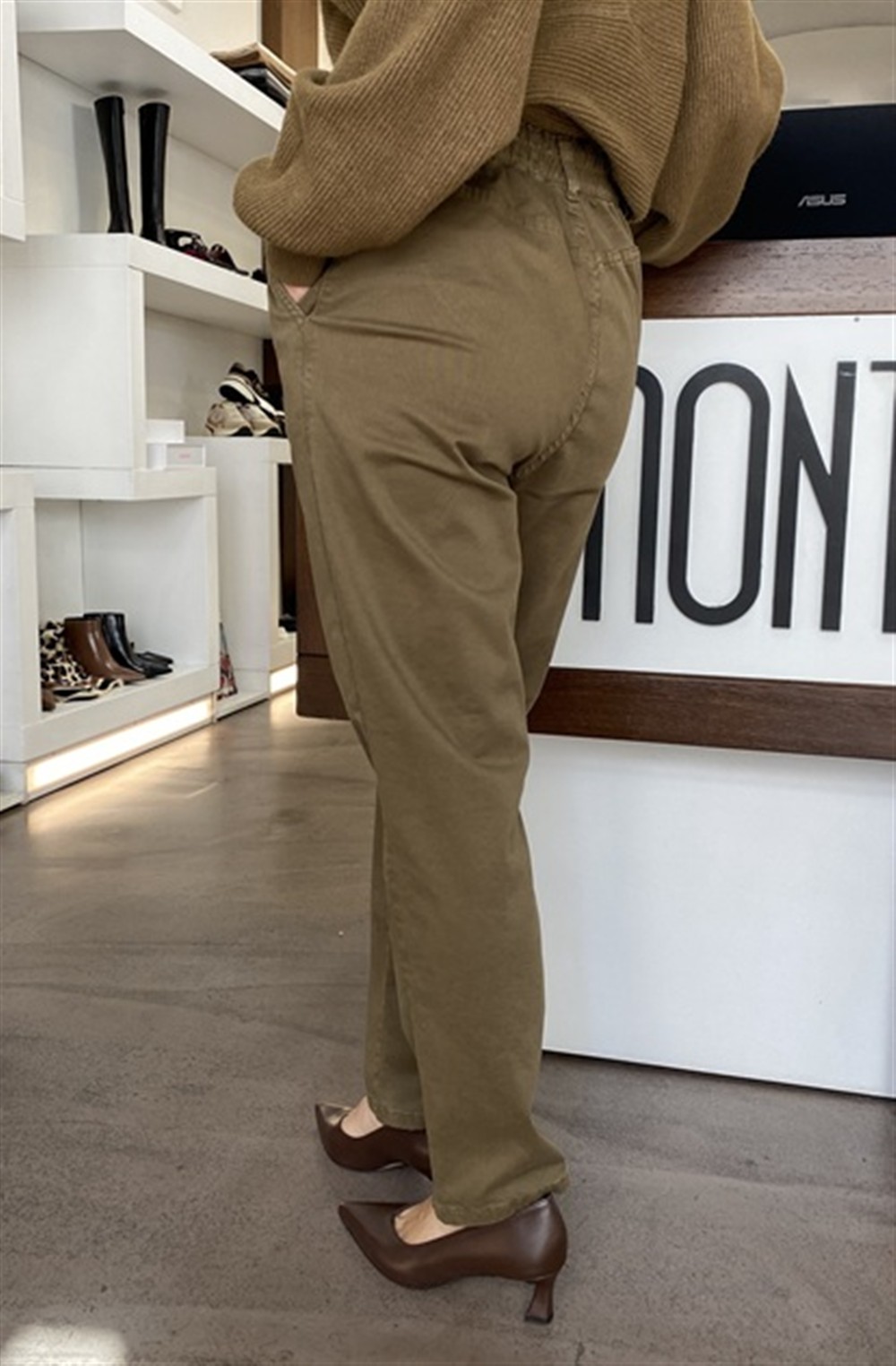 Chinos con elastico sul restro del cinto OLIVA