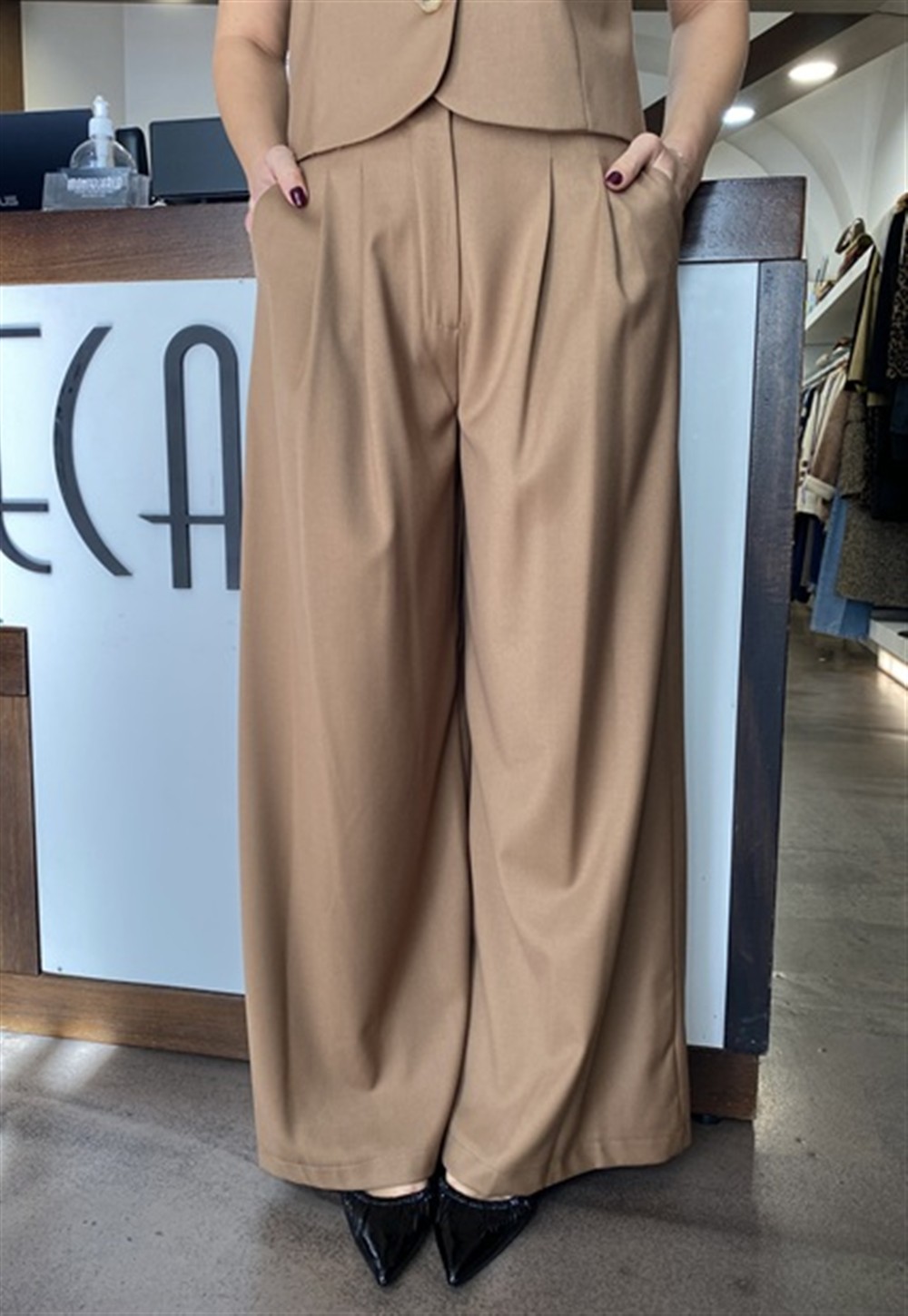 Pantalone a palazzo con pences BEIGE