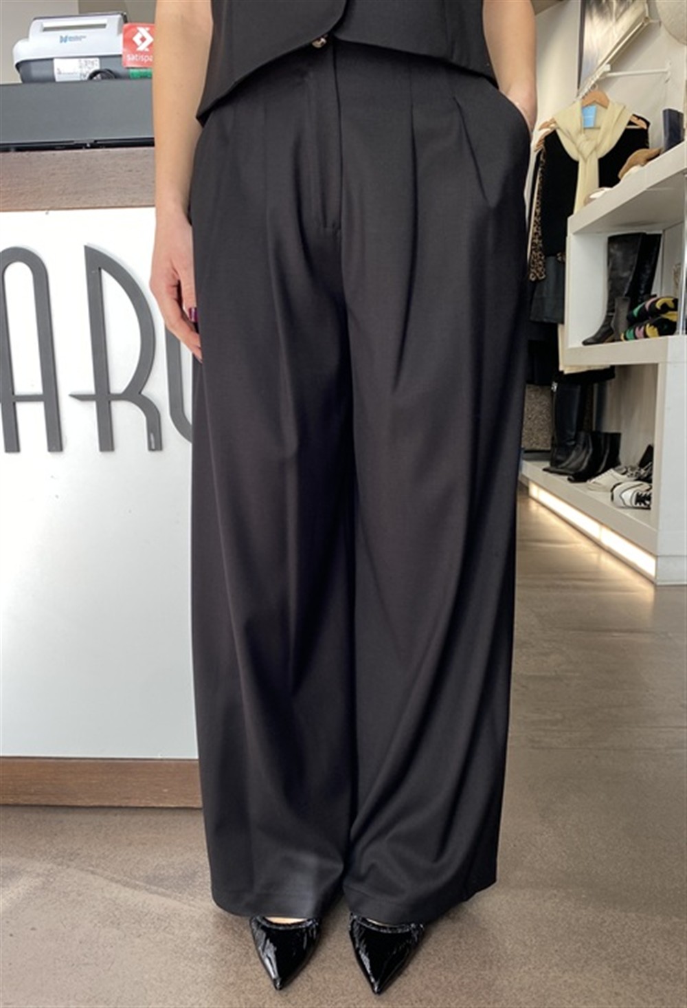 Pantalone a palazzo con pences NERO