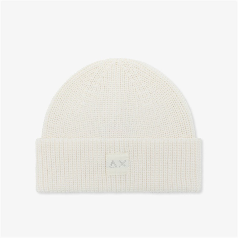 C45201 BIANCO PANNA – Berretto beanie in misto lana con logo